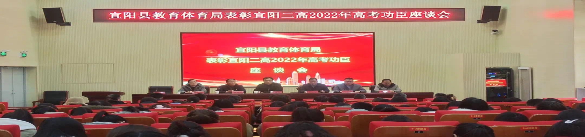 宜阳县第二高级中学始建于1951年,旧址位于宜阳韩城。2016年县委、县政府高瞻远瞩,大力发展高中教育,在宜东新区建设新校。新校占地256亩,总投资3.2亿元、总建筑面积11.4万平方米,可容纳4500名学生就读。新校共有教学楼、科学楼、图书馆、行政楼、宿舍楼、教师公寓、餐厅、风雨球馆等十三栋单体建筑,建有理化生实验室各6个,计算机教室6个、通用技术教室2个、创客空间2个、心理咨询室、录播室、地理、历史、音乐、舞蹈、美术等专用教室、标准化运动场等。图书馆藏书15万册,能够满足正常的教育教学需要。本着为党和国家培养优秀人才的初心,新校确立了“关注未来发展,成就美好人生”的办学理念和“让尽可能多的孩子,上尽可能好的大学”的办学目标,以“立德树人、求实创新”为校训,“务实求真、严谨治学”为教风,鼓励学生们“博学善问、奋勇争先”,逐步形成了“刻苦勤奋、创优创新”的良好校风。