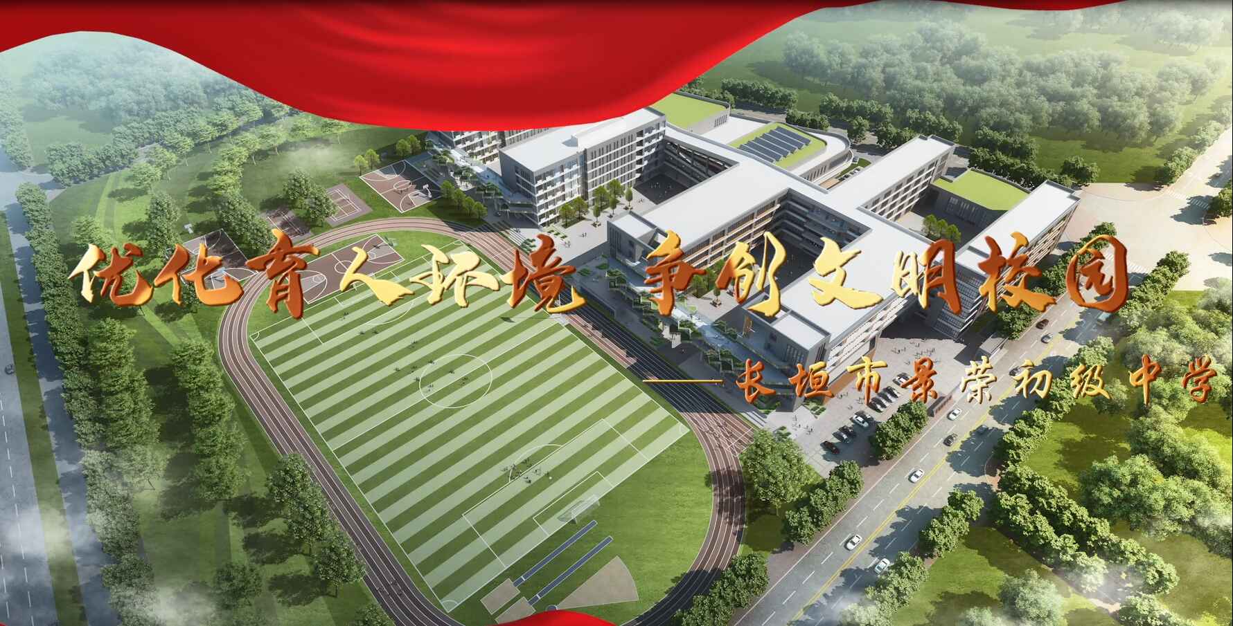 长垣市景荣初级中学位于长垣市景荣路东段路南,东临中环路,学校占地面积45544.49平方米。校园主要建筑有两座教学楼、一座行政办公楼、一座三层学生餐厅、两座学生公寓、室外运动场和室内篮球场等。学校教学区、生活区、活动区布局合理,各建筑各层之间有连廊相接,学生通过连廊往返于教室、餐厅、宿舍,学习、生活舒适方便,实现了雨不湿身、雪不沾衣,夏无烈日曝晒,冬无朔风劲吹。 学校规划为16轨制,共48个教学班,目前已有44个教学班,学生2300余名,教职工161人。学校以办人民满意的教育为宗旨,以“强素质、创特色、树品牌、争一流”为办学理念,不断改善教学条件。努力创建和谐校园,逐步形成了“敦品励学 积厚流光”的校风、“同心乐育 广学致远”的教风和“惟日孜孜 善善从长”的学风。 学校坚持以德治校,以质兴校,以管理求效益,以创新求发展,全面提升教育教学工作质量。校本教研、教师素质比武、岗位大练兵,激发了教师学习的热情,也培养了一批业务水平过硬的教师队伍和学科带头人。我校全面推行课程改革,灵活运用“小组合作分层教学模式”,鼓励学生帮扶结对,现已逐步形成独具特色的教学风格。教师的教学观念发生了根本变化,也充分调动了学生的学习积极性,培养了学生的合作探究能力,实现了全员参与、整体提高。建校以来,学校各项工作成绩斐然,先后荣获河南省首批“五育”并举实验学校、河南省园林学校、河南省中小学数字校园标杆校、新乡市中小学党建示范校、新乡市初中教育教学先进学校、长垣市首届市长教育质量奖先进学校、长垣市文明校园、长垣市中小学德育示范校、长垣市教育系统先进基层党组织、义务教育标准化管理特色校等多项荣誉。