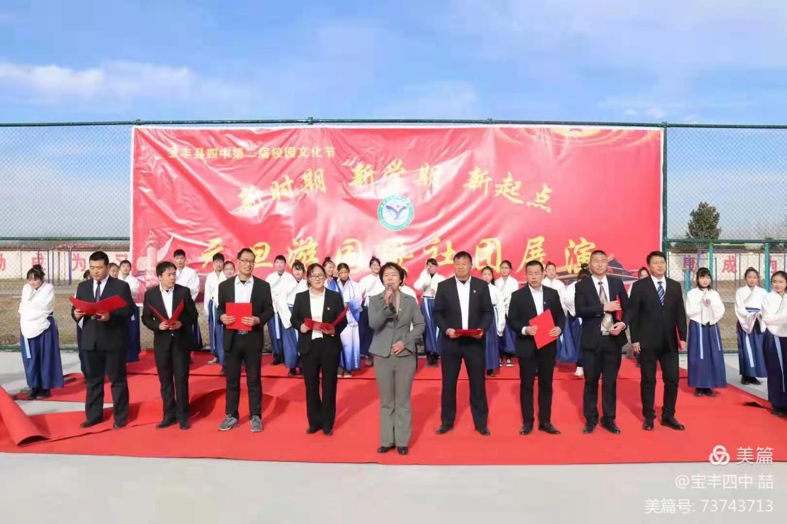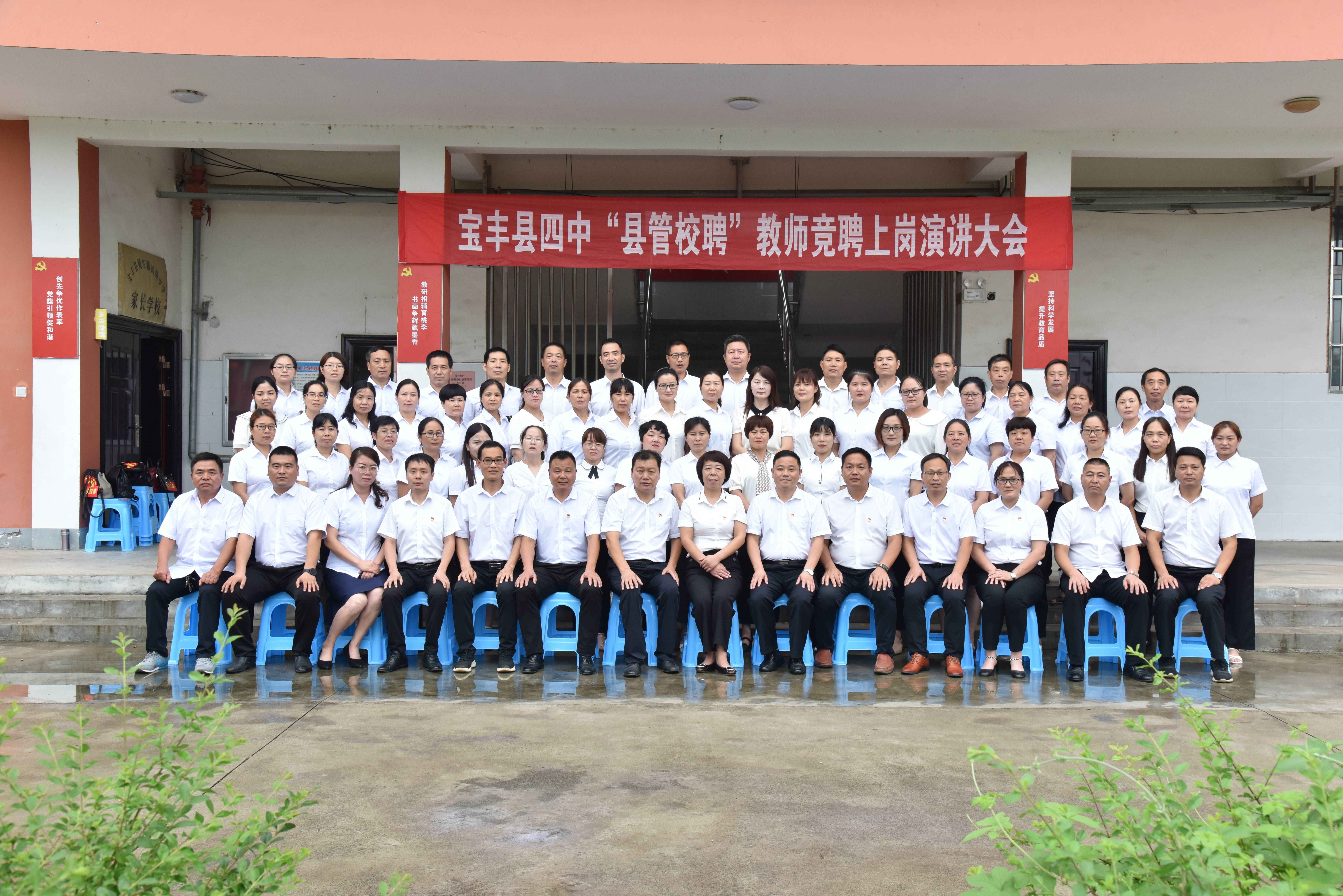 宝丰县第四初级中学,原周庄镇初级中学,该校创办于1996年,于2019年9月提档升级为县级中学,是宝丰县5所县直初中唯一的一所寄宿制学校。学校占地面积56亩,建筑面积26000多平方米。学校设置有心理健康咨询室、图书室、阅览室、教师活动室、微机室、录课室等,设备齐全,且正常投入使用。同时学校还开设有物理、化学、生物标准化实验室、音乐教室、美术教室及体育器材室等并全部投入正常教育教学之中。现有19个教学班,在校学生1422人,教职工78人,省级名师1人,省级学科带头人1名,省级骨干教师3名,市级优秀教师6名,市级优秀班主任9名,市级骨干教师6名。 学校为全国青少年校园足球特色校;省中小学教师信息技术应用能力提升工程2.0示范校;第四批全省中小学数字校园标杆校;市首批义务教育标准化管理特色校;市级文明校园等。