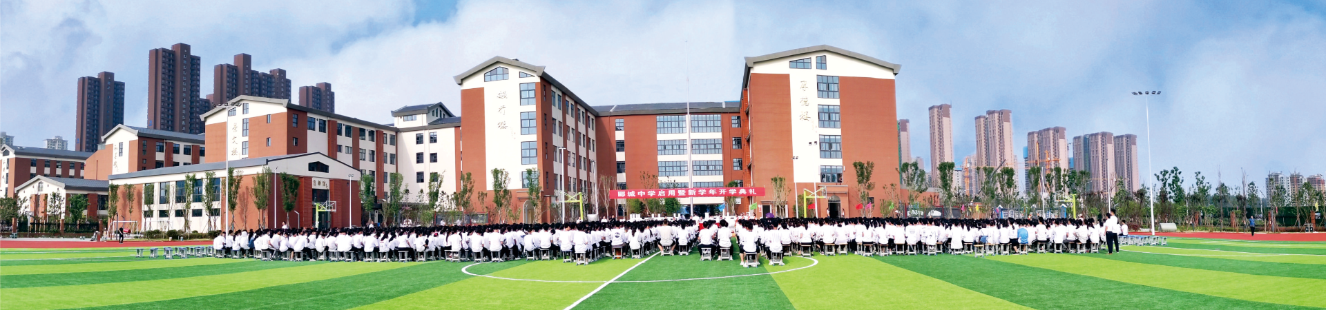 郾城中学 办学理念:立德树人,全面发展。为学生可持续发展服务,为学生终身幸福奠基。 办学目标:创办高质量、有特色、现代化的一流学校。 校训:知行合一 德行天下 校风:进德修业 至善至美 教风:厚德求实 博学善教 学风:乐学静思 致远报国 简 介 郾城中学,位于漯河市会展路东段66号,是郾城区政府投资近3亿元承建的重点民生工程,是按照省级一流标准打造的公办寄宿制初级中学。现有3000余个优质学位,182名教职工。学校建筑面积近4万平米,设有60个智慧教室,并有创客教室、音乐室、美术室等30余个功能教室;地下一层建筑面积13000平方米,设置车位200余个,设有乒乓球馆、各科兴趣室和社团活动室20余个。 郾城中学管理和教师团队以全市选拔的优秀拔尖人才为主,其中郾城中学党支部书记、校长王晓涛是全国优秀教师、全国优秀班主任、正高级教师、中原领军人才。还有国家级、省级优秀教师、骨干教师、中小学名师和省级优秀班主任30余名。学校荣获“全国青少年篮球特色学校”“首批河南省义务教育阶段优质教育集团”“河南省信息化标杆学校”“河南省义务教育装备标准化实验学校”“首批河南省‘五育’并举实验学校”“河南省最美大课间”“河南省海军航空兵优质生源基地”“漯河市基础教育工作先进单位”“漯河市教学教研工作先进单位”等多项荣誉。 校园有线网络无线网络全覆盖,寝、教室冷暖空调全覆盖;三个高标准餐厅,实施自主经营,提供优质营养餐;实行小班额教学,上早晚自习,根据学生需要安排住宿,有专任寝室生活老师,设有医务室,配有专职校医;节假日教师免费跟踪辅导,有效减轻家长负担。 郾城中学秉承“立德树人、全面发展”的育人理念,着力培养学生的学习能力和良好习惯,提升学生做人品位和核心素养,让学生爱读书、会锻炼、勤学习、善思考。我们将把培养学生终身发展的素养和提高教学质量作为学校第一生命线,早日建成区域一流名校,让莘莘学子学有所成,让殷殷父母期盼成真,为郾漯大地再培厚土,为中原名城再添浓彩。