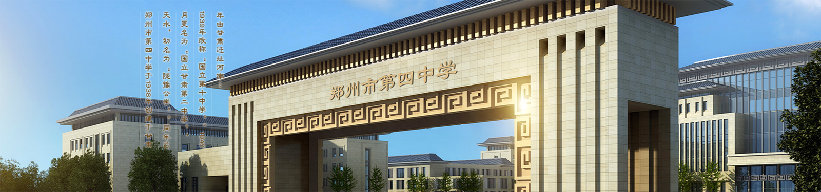 郑州四中1938年创建于甘肃天水,初名为“陇豫公学”,1946年迁址河南,1978年被确定为郑州市首批重点学校,2003年被评为郑州市首批示范性高中,2005年被评为河南省首批示范性高中。2020年学校高中部新校区开元校区投入使用,开启了郑州四中快速发展的新模式,目前学校以集团化方式办学,包含近十所成员校,集团校协同均衡发展。 时光荏苒,吐纳英华,历经几代四中人对教育事业执着追求和不断探索,学校形成了独特的办学品质: 深厚的文化底蕴。学校在办学伊始,就确立了“厚德、达材、敬业、乐群”的校训,学校以“为了每位师生的可持续发展”为办学理念,以“肩负民族复兴使命,心系人类美好未来”为培养目标,并在长期的教育教学实践中,形成了“乐学、多思、合作、争优”的学生文化,“理解、信任、敬业、创新”的教工文化,“服务、民主、协作、规范”的管理文化以及“向善·向前”的学校精神,力争把四中建成一所有文化、有追求、有责任的国内一流名校。 前沿的课堂改革。近年来学校不断深化课堂教学改革,努力构建学本课堂,改变了传统课堂教学中重教轻学的倾向。学本课堂旨在改进课堂生态,凸显学生主体地位,倡导“以学生学习为本”的核心理念,做到真情境(创设情境,问题导向)、学为本(先学后教,以学定教)、自主性(自主建构,主动学习)、深度化(深度思维,体验感悟),实现“为了每位师生的可持续发展”,回归原生态本真课堂,激情满怀构筑激情课堂,尊重教学规律引领高效课堂。学本课堂使学生的主体地位逐步体现,自主学习的主动性不断增强,学生的合作意识、探究能力明显提升。 一流的师资队伍。学校开元校区高中部位于惠济区开元路129号,高中部一线教师中有研究生或研究生学习经历的老师170余人;正高级教师2人,特级教师3人,高级教师119人,一级教师 137人;国家省市学科带头人、骨干教师75人,省市名师、杰出教师13人,郑州市教研室中心组成员14人,郑州市“十佳”班主任1人。省市级名师、骨干教师、学术技术带头人占教师人数的三分之一。现有教育部领航工程名校长工作室、河南省名班主任工作室、郑州市名校长工作站、名师工作室、杰出教师工作室各1个,郑州市学科基地2个,河南省首批省级一级学科基地1个,二级学科基地1个。近几年,学校引进多位清华、北大名校毕业高端人才,为拔尖创新人才培养提供有力支撑。
