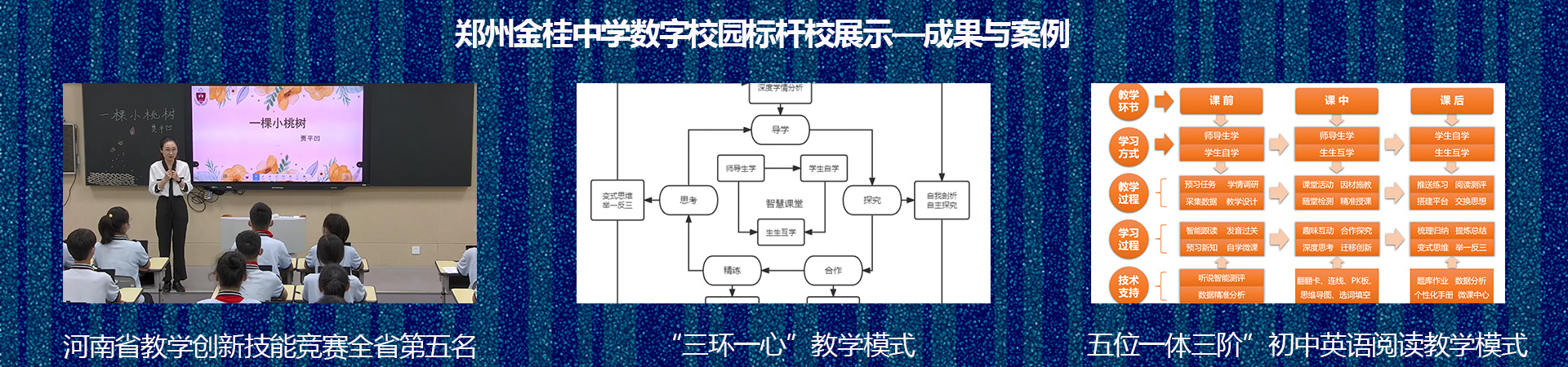 郑州金桂中学简介 郑州七中金桂校区(郑州金桂中学)位于郑州市金水区滨河路与桂圆南街交叉口向南200米路西,是金水区教育局在金水北部重点打造的现代化优质公办初中,现有31个教学班,1900余名学生,有良好的社会认可度和知名度。 学校拥有一流的领导团队,现任书记张登高,郑州市优秀教师,郑州市德育工作先进个人,河南省优质课一等奖、河南省教科研成果一等奖获得者,拥有丰富的教学及管理经验。校长梁志杰系正高级教师、特级教师、全国优秀教师、河南省基础教育思想政治教学指导专委会委员、郑州市政府督学,班子成员大多来自郑州七中教育集团,均系在教学一线历练多年脱颖而出的教育精英,管理严格。学校师资力量雄厚,一线教师86%毕业于浙江大学、北京师范大学、华东师范大学等国家“985”和“211”高校,56%为硕士研究生学历,教师平均年龄32.6岁,正值年富力强、建功立业的黄金年龄。 学校秉持臻雅教育教育理念,以“真”为办学灵魂,坚持民主、公开、规范的治校方略,树立学生第一、教师第二、干部第三、校长第四的服务意识,实施以小型团队研究为基础、以目标和问题为导向的“走动式”管理模式。学校以争创“周恩来班”“ 邓颖超班”为抓手,以培养刚毅坚卓、敢为人先的博雅学子为己任,为每一个学生涵养灵魂香气,致力将学校办成“通体温暖,师生乐栖的家园;弘毅尚学,英才作育的学园 ”。 百舸争流,奋楫者先。近年来,学校先后荣获河南省数字校园标杆校、河南省义务教育阶段作业评价改革实验校、郑州市文明校园、郑州市中小学教学创新先进单位、郑州市学校课程建设奖、郑州市中小学德育创新先进集体、郑州市师德先进集体、郑州市未成年人思想道德建设工作优秀单位、郑州市数字校园四星级学校等荣誉。2024届毕业生在学业增值性评价中获全区第一,进入第一批次高中人数的比率名列前茅。学校非常注重学生的全面发展与个性特长的涵养,先后开发了易趣节、旅游研学、科学技术夏令营、学科素养节四大校本课程和20余个学科社团,博雅堂、图书漂流长廊、民族音乐活动室、国画室、瑜伽室、稼穑园、心理按摩室、实验室等场所已发展成为学生成长的乐园。小飞虫生物社、金韵合唱团、齐舞社团、妙笔生花国画社、时政研习社等社团在各种活动展示中成绩优异,被评为金水区新星社团。