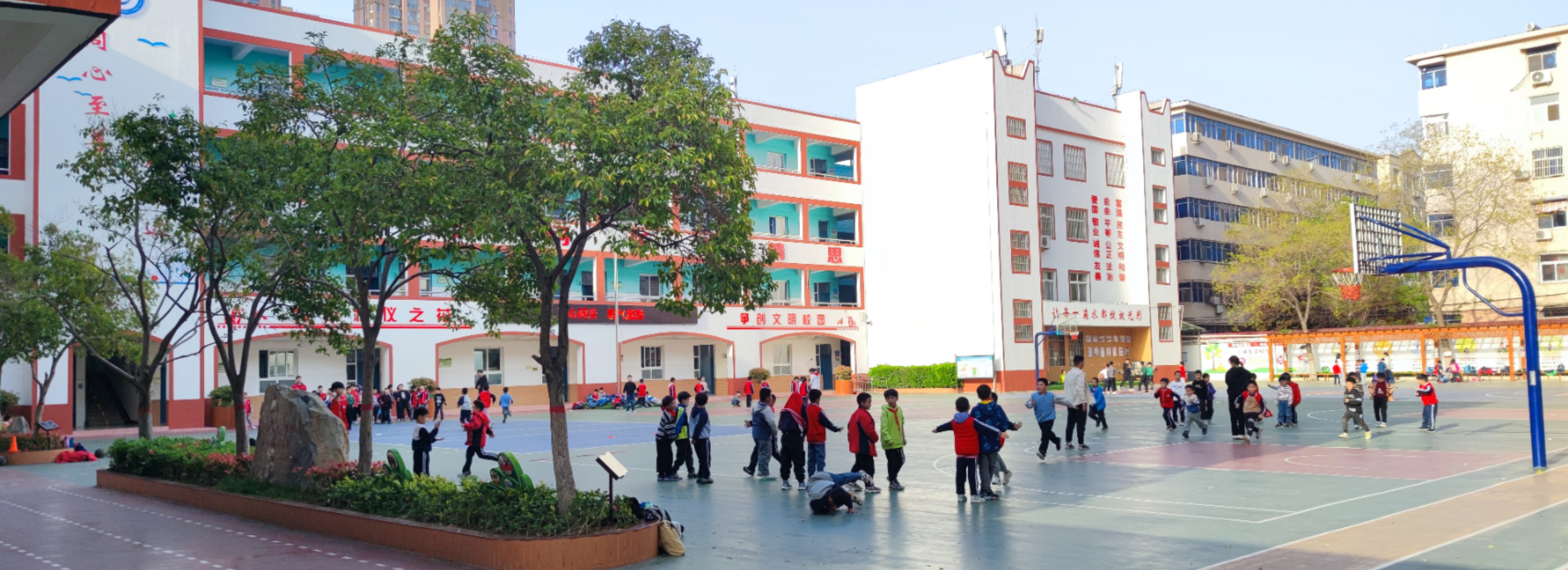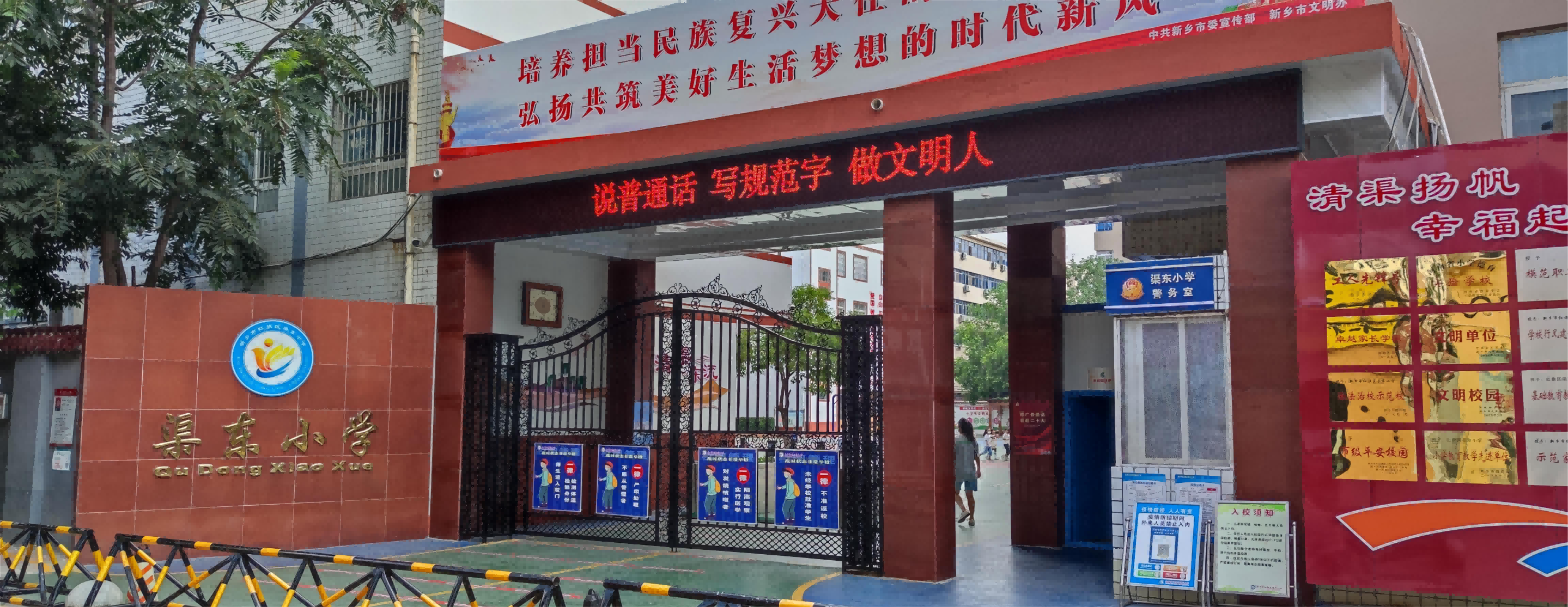 新乡市红旗区渠东小学始建于1999年的新乡市红旗区渠东小学因地处牧野大地的胜利渠东畔而得名,学校现有31个教学班,1560多名学生,教职员工80多名。 渠东小学依托地域资源,探寻渠的文化,水的精神,形成了独有的清渠文化,寓意着渠东小学如一汪清泉,一路东流,奔向大海。学校以清渠文化为引领,大力开展精神文明建设,着力建设清正班子,打造清雅教师,培育清淳学子。 “问渠哪得清如许,唯有源头活水来。”“问渠”寄语师生:每日三省吾身。我们希望每一个走进渠东校园的师生,带着思考。作为学校,问一问,今天,我们在学校发展的道路上做了什么?作为教师,问一问,今天教给了学生什么?作为渠东学子,今天,我收获些什么?我们希望所有渠东人像水滴一样,做一个纯净、坚持、乐施、奉献的人,努力绽放光彩,做最好的自己! 近年来,渠东小学先后荣获省德育实验学校、语言文字示范校、卓越家长学校、示范家长学校、数字校园标杆校,新乡市文明校园、教育工作先进单位、教育科研先进单位、平安建设工作先进单位、少先队先进集体、法治示范校等荣誉称号。 接下来,我们将以更加昂扬的姿态,乘清渠之水,扬帆起航。