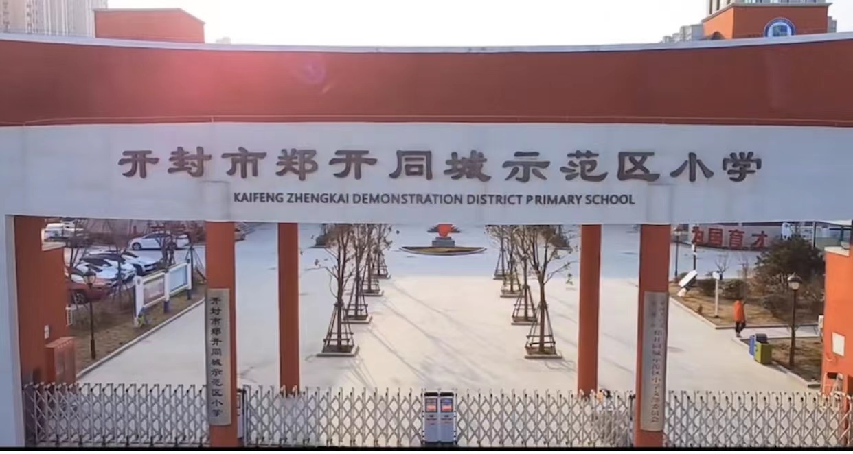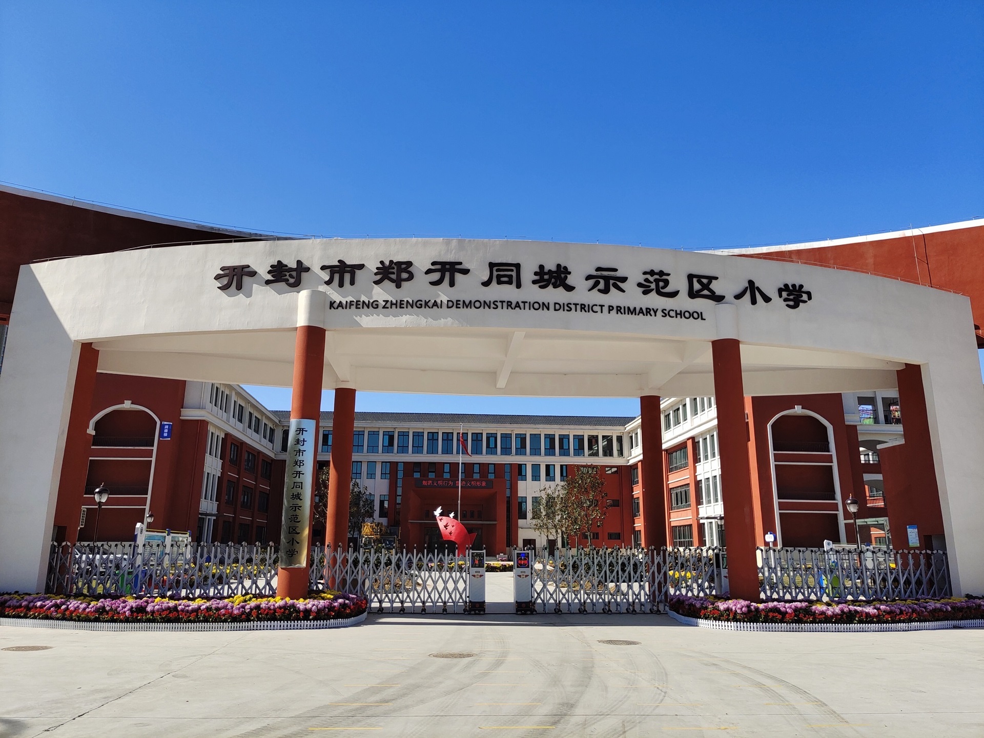 开封市郑开同城示范区小学是开封市城乡一体化示范区为促进郑开教育同城化,提升开封教育品位而倾力打造的一所高标准现代化小学。学校位于开封西区核心地带,金耀路与附一大街交汇处,地理位置优越、自然环境优美、育人环境优良。学校占地面积27500㎡,建筑面积22783㎡,办学规模为36个教学班,约1800名学生。2021年9月开始招生,目前有14个教学班,在校生730人,教职工42人,教师学历合格率及高学历均为100%。多位教师获得过省名师、市骨干教师、河南省学术技术带头人、市级优秀教师、市级优秀班主任等荣誉称号。