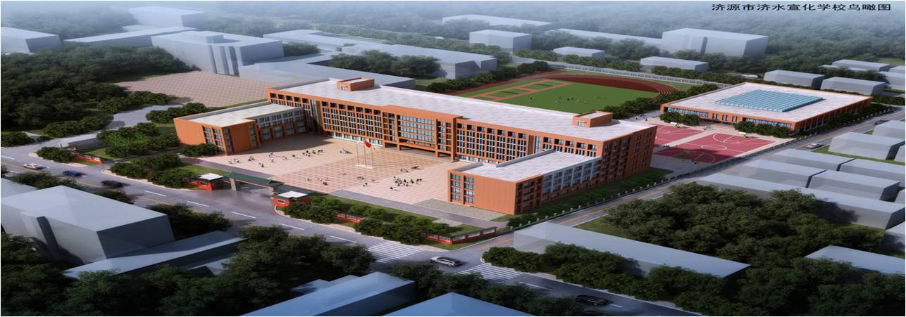济源市济水街道办事处宣化学校,地处济源市的经济、文化中心,是济源市文明标兵校园,现为济源市中心城区规模最大、最具成长的学校之一。学校区位优越,环境优雅,师资雄厚。占地面积16390.9平方米,建筑面积20250平方米,目前有57个教学班,学生3000余人,教师100余人。其中国家、省、市级骨干教师、学科带头人25名。近年来,学校实现了教学办公设施的现代化,可容纳100多个车辆的地下停车场、可容纳500人的高规格多功能厅、环境怡人的心理健康活动中心、标准化的新国标运动场地;教学楼还安装了中央空调,实现了所有教室、办公场所的智能温控,冬季供暖直通中央空调运行,目前宣化学校是济源市设施最现代化、信息化水平较高的学校。宣化学校以“化”教育理念为统领,发扬“立德树人、化成天下”的学校精神,秉承“宣教立德、化育勉行”的校训;倡导“内化于心、外化于行”的校风,崇尚“春风化雨、化蛹成蝶”的教风,全面推进基础教育课程建设,坚持立德树人为根本,以教育教学质量为核心,着力打造一所现代化、规范化、个性化、示范化的文明学校。