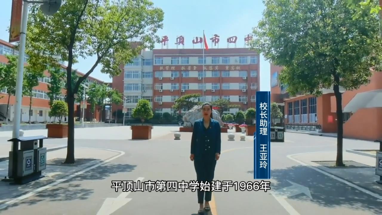 学校简介 平顶山市四中创建于1966年,是市教体局直属的全日制公办高中。学校位于新华区新新街,占地101亩,北依龙山,南临白龟湖科教园区,校园建有设备先进、功能齐全的各类活动场馆、专用教室和生活设施,水榭亭台布局井然,校园文化博雅沉静,是莘莘学子求学成才的理想场所。 学校现有44个教学班,在校生2400余人,教职工186人,其中全国模范教师1人,省市级名师、骨干教师45人。建校57年来,平顶山市四中以“博学、慎思、明辨、笃行”为校训,坚持实施“生态建校、文化立校、教研兴校、特色亮校”四位一体的办学战略,社会知名度和美誉度不断提升。学校先后荣获了“全国青少年校园足球特色校”“全国青少年校园篮球体育传统特色学校”“河南省文明校园”“河南省健康单位”“河南省教学质量评估先进单位”“河南省数字校园标杆校”“河南省一校一品特色校”“河南省中小学劳动教育特色学校”“河南省体育传统项目学校”“平顶山市普通高中教学质量先进学校”“河南省文明校园(标兵)”“河南省德育工作先进集体”“河南省健康单位”“2022年首批河南省中小学学生社团特色学校培养对象”“平顶山市教科研先进单位”“平顶山市电化教育活动先进单位”“平顶山市教育电视宣传工作先进单位等荣誉称号,以实实在在的成绩,践行了“低进高出,高进优出,培养优秀人才,创办优质高中”的办学承诺。