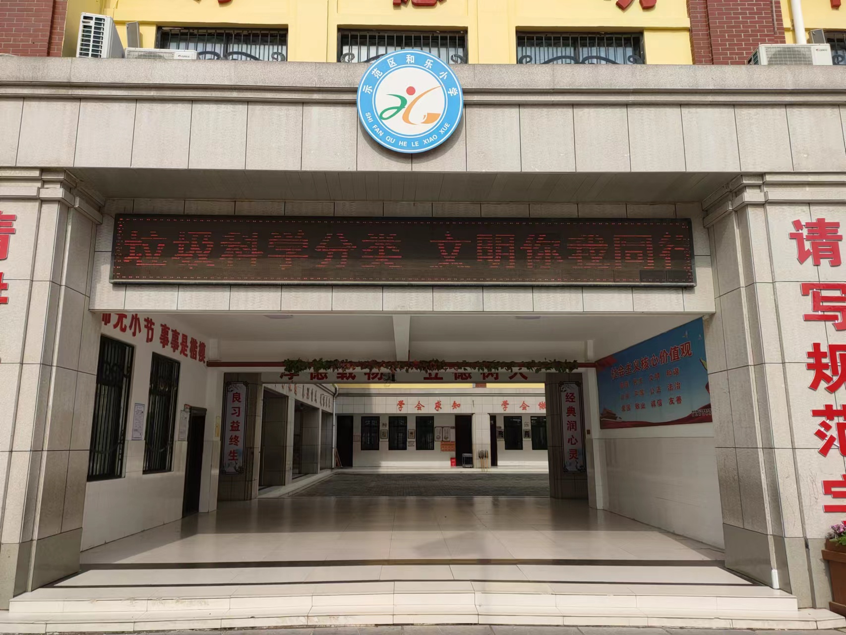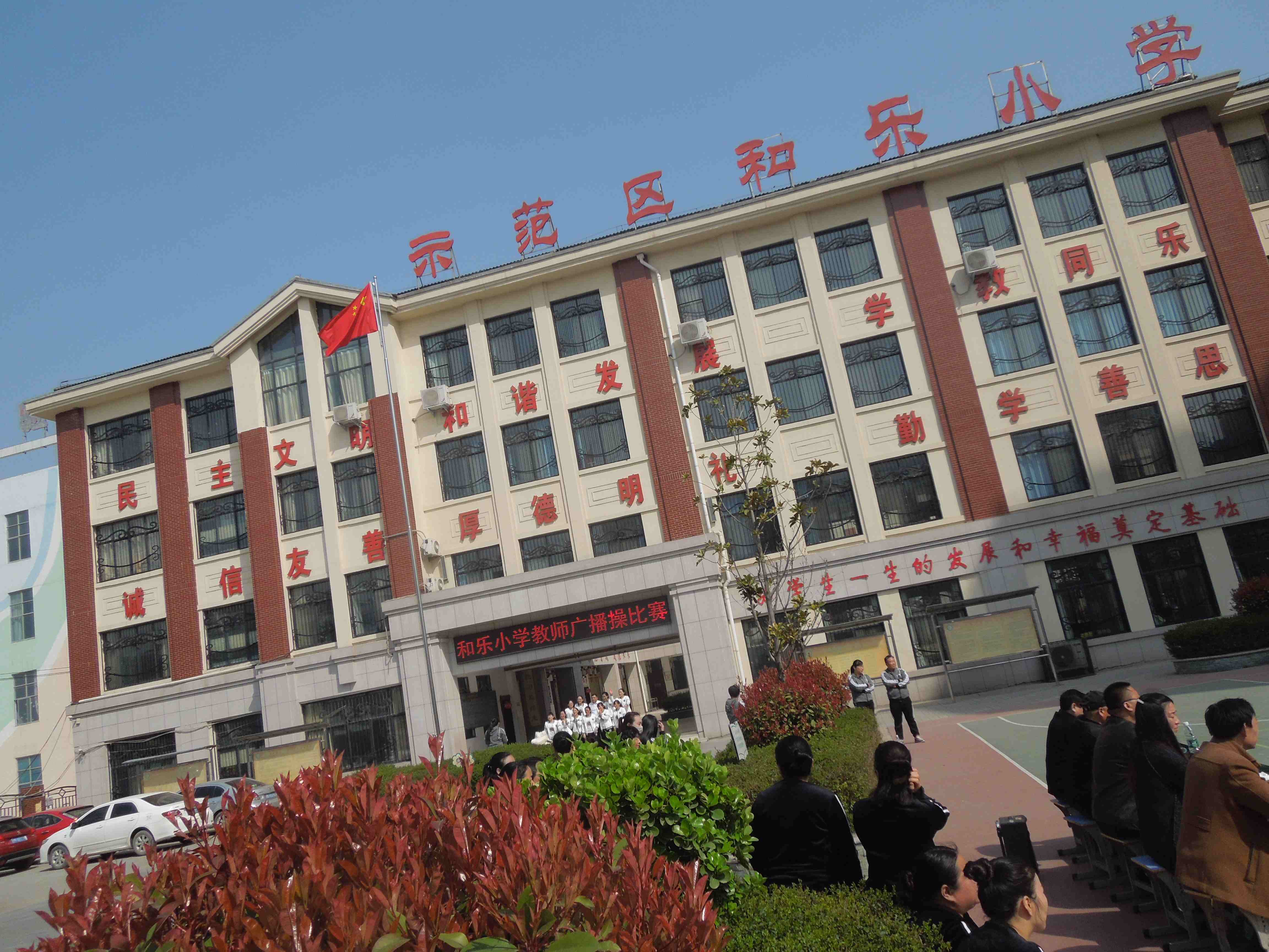 学 校 情 况 简 介 一、学校概况 商丘市城乡一体化示范区和乐小学(原名张八庄小学)位于珠江路中州路东200米北侧,处于睢阳区与示范区交汇地带。学校始建于1936年,拥有近百年的建校历史,长期以来为本地区基础教育做出了不可磨灭的巨大贡献,是示范区内校史最为悠久的学校之一。1936年由爱国乡绅屈运宁先生首建运宁学堂,新中国成立后更名为张八庄小学,1999年由村民和社会各界人士自筹资金扩建改迁至张八庄村内,2014年4月搬迁至现址,服务范围覆盖和乐社区、沙沃新村、董庄村委会等周边1.5公里内近20000群众。 如今的和乐小学占地面积约8686㎡,生均占地面积4.99㎡,建筑面积6549㎡,生均3.8㎡。现有教师92人,中小学高级教师5人,占教师总人数的5.43%;中小学一级教师39人,占教师总人数的额42.4%;中小学二级教师42人,占教师总人数的46.2%,无聘任证4人。高级工1人,占教师总人数的的1%;其中本科学历68人,占教师总人数的的73.9%;大专学历25人,占教师总人数的27.1%,专职体育老师6人,音乐教师4人,美术教师4人。教师学历达标率100%。学校现有一至六年级33个教学班,在校学生1740人。现有音乐教室、美术教室、计算机教室、多功能室、图书室、体育器材室、科学实验室及充足的教学辅助用房,教教育教学设施配套齐全,区域分明,布局合理,校园文化氛围浓厚。采光通风卓越的U型教学楼使各个教室宽敞明亮,走廊宽阔,各室内清洁整齐,课程表、时间表、值日表张贴有序,规章、名言、宣传画等悬挂规范,学习园地生动活泼,富有时代气息。