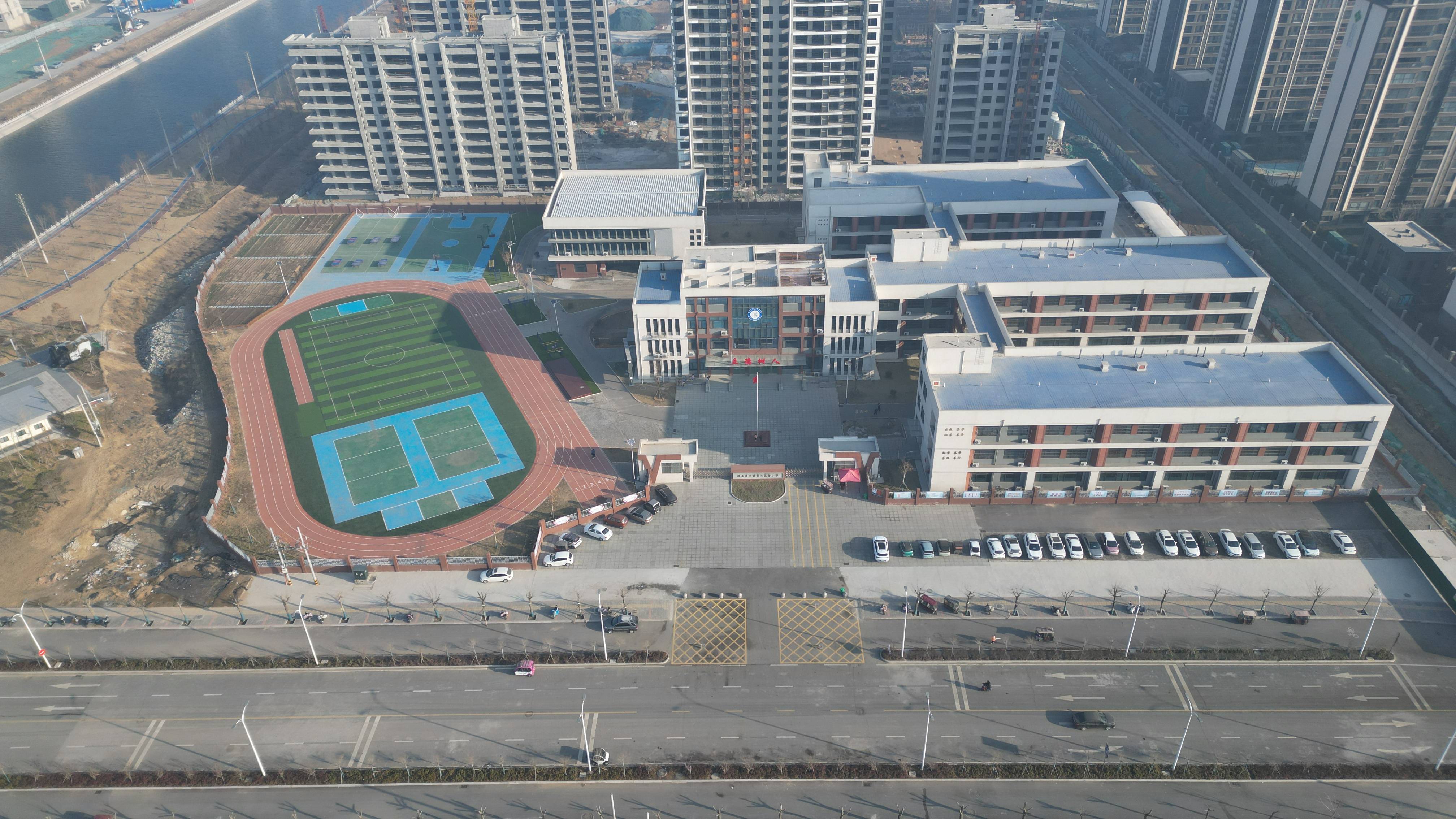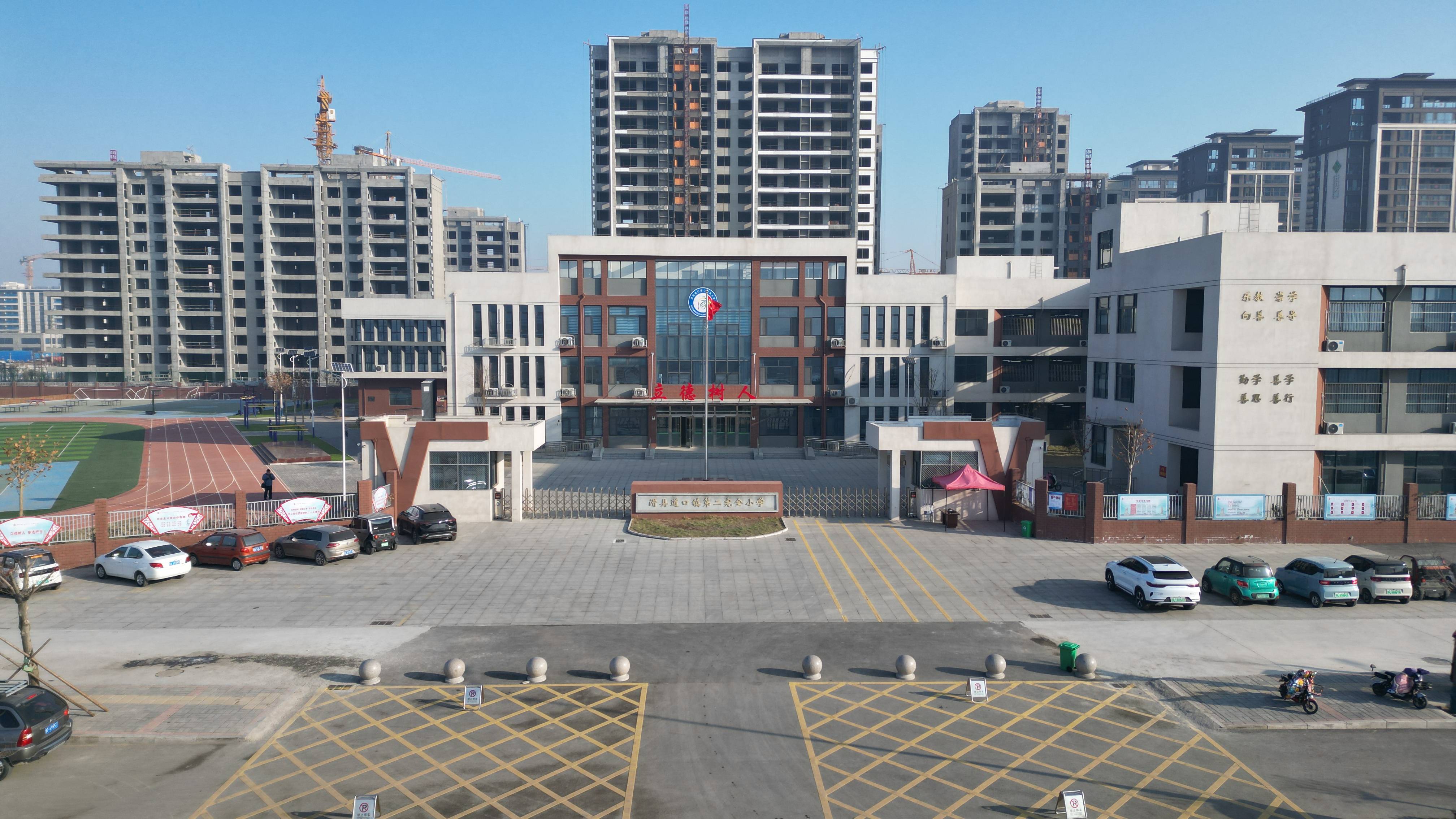 千年古运河畔,古镇人民枕河而住,伴水而生。而今,就在这座城的北边,从西至东,协同发展战略稳步推进,绿色生态廊道建设展开即是一副美丽画卷。它蓝绿交织,水城共融,美不可言。滑县道口第二完全小学旧址在千年古镇之畔,蕴含根的魂魄,低调却又有范儿。而今,她将以“滑县教育局直属学校”的新姿态顺应时代发展,移居新家园。 新校址位居新建林苑路大功河桥东侧,地理位置优越,毗邻滑县一中、森林公园、高铁站、高等人才基地等。选址厚寄“遥望过去,展望未来”之意。校园布局合理,雅致美丽,常年空气清新,生机盎然。占地面积共22844.66平方米,建筑面积13789.58平方米,是一所设计规模为xx班的六年制公办小学。建有校内大草坪、阳光露台、风雨操场、快乐农场、四季花园、科学实验室、微机室、心理咨询室等专用教学设施。于2023年9月1日正式投入使用。学校实行午宿(餐)制,餐厅食材鲜美,配餐营养均衡。学校拥有一支结构合理,名师荟萃的优秀教师队伍,全部为选调各校的正式在编教师,5年以上教龄教师70人,中级及以上职称25人,占32.5%,各级各类名师9人,占11.7%。全体教师将以人从众的力量将学校合力托举。优质资源的整合和重组,意味着优良传统的互补与融合,也意味着对教育价值的重新发现和重新认定。 学校秉承“办家门口的高品质学校”为宗旨,尊重学生差异,开发学生潜能,促进学生多元发展,在严格执行国家课程的同时,契合本校发展路径,为学生提供更丰富、适应性强的选择性课程。 一切源于对教育的忠诚与期待。学校文化的DNA将深刻全校师生心田,以“家”教育为办学理念,以缔造“家”课程体系为核心所在。将“武术课程” 作为 “龙脉”继续发扬光大,并精心为孩子们打造“古镇传承课程”、“森林农庄课程”、“心灵滋养课程”、“艺术特色课程”等。以文化立校,以课程育人。 滑县道口第二完全小学将怀揣教育理想创校初心,坚定的走在教育事业的蔓蔓征途上,为实现“为国育才、为党育人”的教育目标不断努力。