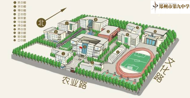 一、学校简介 郑州市第九中学是河南省示范性普通高中、河南省文明单位,是省教育厅唯一命名的河南省创新教育实验试点学校,首批河南省普通高中多样化发展示范学校,河南省普通高中课程改革先进单位,河南省教育系统先进集体,教育部第一批教育信息化试点学校,全国十佳现代学校,全国首批智慧教育实验校,河南省第一批数字校园标杆校。近年来,学校以“新工科”为主题,大力发展数字校园,推进教育信息化发展。 二、办学条件 学校坐落于农业路和文化路交汇处。占地153亩、10万㎡,建筑面积近5万㎡,是一所36班编制的单设高中。得中楼、致中堂、正中园、养中馆等现代化基础设施为学子们的全面发展提供了保障;甲级图书馆建中楼和遍布校园的网络接口为学生的学习与发展提供了便利条件;完成综合化的公共信息服务平台的搭建:为学生搭建展示自我的平台——校园数字电视台、满足师生个性化学习的网络空间平台、针对师生的专家讲座直播平台和教育资源综合管理服务平台。应用学生机房构建基于Moodle平台的数字资源平台,满足教师应用数字平台进行教学、进行教师培训、组织学生开展自主学习及开展教学管理活动。 三、师资力量 学校现有教职工152人,专任教师全部为本科以上学历。其中高级教师61人,特级教师4人,国家级骨干教师1人,省市级名师、骨干教师、学术学科带头人、拔尖人才等共43人。 四、办学特色 学校借助65年的教育实践和厚重的文化积淀,确立了“精一执中”的学校精神和“修己达人,九德惠风”的优良校训,打造“中原、古典、书香、园林”的文化校园,以学习科学为教学方向,以生态大课堂的构建为核心,以课型教学研究为主线,完善、推广已有的教学模式研究成果,打造具有九中鲜明特色的“教师教”和“学生学”。依托人文科技名师工作室,借助校内六大创新实验室(生化定量创新实验室、微生物创新实验室、数字探究创新实验室、数字星球创新实验室、考古与发现馆、海空酷客),在河南省率先开启创新教育实践品牌课程。基于“新工科”发展方向,学校联合优秀校友周鸿祎开办全国首个以“新工科”为专业方向的“360创新班”,积极探索的六年一贯制“新工科”创新课程体系正在成为郑州九中新的办学特色。 五、教学水平 70年来,从郑州市第九中学走出的合格毕业生已超过3万人,其中超过60位毕业生直取清华北大。 学校教育教学质量全面攀升,连续14年荣获郑州市普通高中教学创新先进单位。