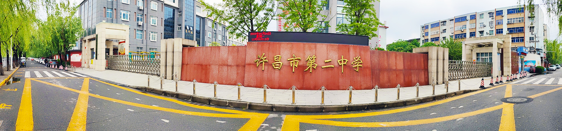 曹魏古城,莲花湾畔,清流碧水,荷香莲影,育人佳境。 许昌市第二中学始建于1917年,始名“省立第四中学”,1949年更名为“许昌中学”,1954年正式命名为“许昌市第二中学”,原址位于许昌市文化街。2009年,按照市委、市政府整合教育资源的要求,许昌市五中并入许昌市二中,整体迁至现校址。2015年成立许昌市二中教育集团,分三个校区。现有53个教学班,2700多名学生,230多名教职工。 薪火相传延绵百年,凝重厚实载誉许昌。长期以来,许昌市二中始终遵循“以人为本、挖掘潜力、科学管理、专注未来”的办学理念;始终坚持民主、科学、高效的管理方针;始终恪守“勤奋、严谨、求实、创新”的校训,致力打造尊重教育规律、充满人文气息的书香校园、绿色校园、平安校园和幸福校园,先后获得河南省文明校园、河南省党建示范校、河南省中小学标准化管理特色校、河南省书香校园、河南教育名片、河南省教育系统先进集体、河南省职业道德建设示范单位、河南省“五育”并举实验学校、河南省义务教育教学改革示范校、河南省中小学学生社团特色学校、河南省中小学信息化教学改革实验校、河南省学校文化建设百佳学校、河南省省中小学德育工作先进单位、河南省卫生先进单位、许昌市市长质量奖先进学校、许昌市文明单位标兵、许昌市明星学校、许昌名校等上百项殊荣。 水润莲城,莲润二中。她把知识的种子、文明的精神、高洁的品质深深植根于莘莘学子的心灵。菁菁校园,朗朗书声,德高业精的教师,朝气蓬勃的二中学子,书写着更加辉煌的明天……