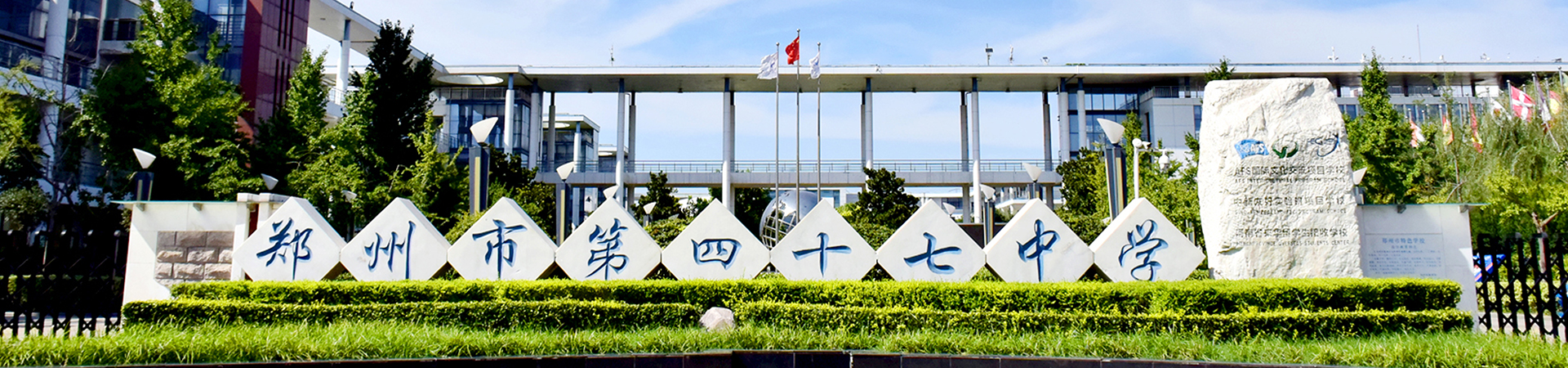 郑州市第四十七高级中学于1996年建校,现已发展为一校十区的协同发展架构。经过积极探索努力,集团在宏志生教育、国际理解教育、体艺教育、创客教育等方面积累了丰富的经验,形成了鲜明的办学特色,得到社会各界的一致认可,先后被授予“全国文明单位”“全国文明校园”“全国智慧校园实验校”“中央电教馆人工智能实验校”“普通高中新课程新教材国家级示范校”“全国国防教育示范学校”“国家汉语国际推广中小学基地”“河南省示范性高中”“河南省数字校园标杆校”“河南省信息化应用示范校”“河南省普通高中多样化发展示范学校”“河南省德育教育先进单位”等荣誉百余项。