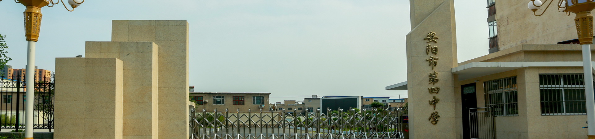 安阳市第四中学,始建于1903年,原址马号街,2014年暑期搬迁至现址。现有在职教职工113人,离退休职工38人。两个校区共30个教学班,1800多名学生。2022年在区教育局的大力支持下,开办了安阳市第四中学中华路校区,新校区教学班6个,学生320余人,中华路校区刚刚招生办学即取得了令人欣喜的成绩,得到广大学生家长及社会的一致好评! 我校在上级教育主管部门的正确领导下,以科学发展观为指引,深入实施素质教育,全面规范教学管理,不断深化教育改革,科学发展,走质量强校、教研兴校之路,实施学校主动发展战略,努力实现办学水平的新突破。