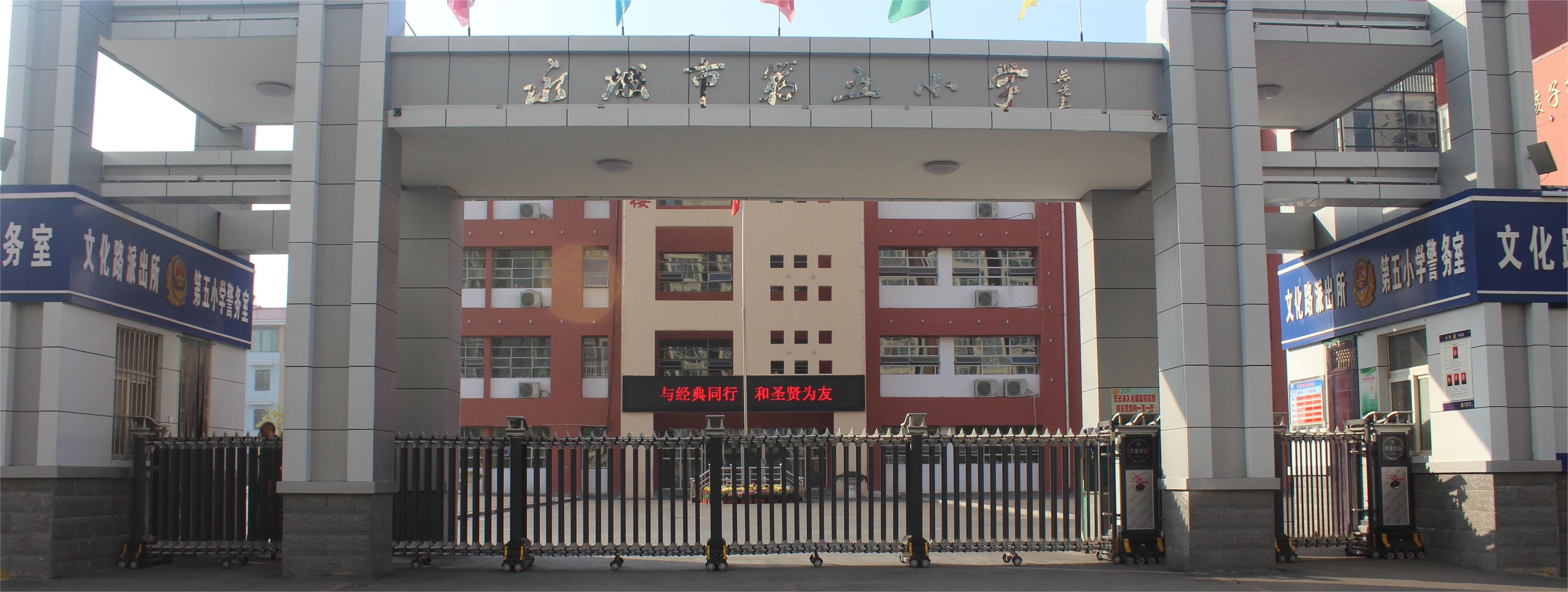 永城市第五小学2010年建校,东、西校区共占地44亩,现有81个教学班,共有在校学生6000余人,教职工254人,其中本科学历236人,河南省教师教育专家1人,省特级教师2人,省学术技术带头人3人,省名师4人,中学高级教师19人,小学高级教师98人。 学校坚持围绕“求实创新”这一主题,确立“以人为本、着眼未来,为孩子终身幸福奠基”的办学理念,创设“和谐尚美、求是创新”的校风,培养“志存高远、自信励学”的学风,以实现“向未来、创一流、出特色”的办学目标。 雨滋桃李花千树,风举鲲鹏路万重。学校被国家教育部命名为“首批全国足球特色学校”,先后荣获“河南省师德师风先进学校”、“河南省党建工作示范学校”、“河南省信息技术与学科深度融合试点学校”、“河南省卫生文明单位”、“河南省平安校园”、“河南省卓越家长学校”、“河南省防震减灾示范校”、“河南省依法治校示范校”、“河南省园林学校”、“商丘市文明标兵校园”等50多项国家省市级荣誉称号,连续九年被市教体局评为教育教学质量先进单位。