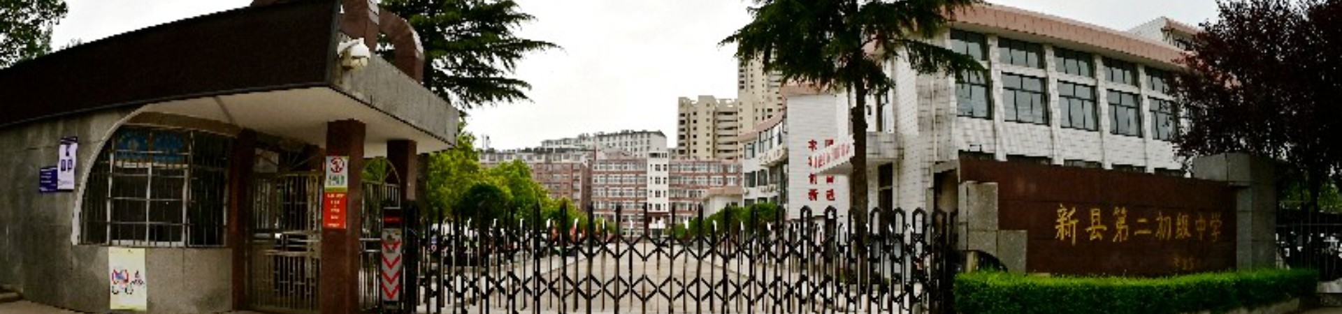 新县第二初级中学创建于1997年,1998年秋招生启用,是由新县籍将军李德生亲笔题写校名的一所全日制学校,位于县城火车站东明路,占地2.8万㎡,建筑总面积1.6万㎡。 一、办学思想 学校坚持“两全”方针,致力培育“四有”新人,按照“以人为本、立德树人、依法治校、培养特长、全面发展”的办学思想,德育为首,智育为重,狠抓养成教育、常规教学、教育科研,建立科学的评价体系,精心打造二中品牌,彰显办学特色。 二、办学条件 规模为22个教学班,各年级教学楼独立分开、互不影响,内设校园网“班班通”、计算机室、多功能教室、音乐美术室、实验室、图书阅览室、心理咨询室、300米环形跑道和标准化足球场、篮球场。 高标准多功能报告厅及师生食堂已于2019年底建成,师生食堂已正式投入使用。 三、师资队伍 学校现有教职工111人,均从全县名师之中遴选而来,其中,中学高级教师33人,一级教师50人,党员教师34人,省级骨干教师32人,市级骨干教师28人,为培养新时代的合格人才提供了师资保证。 四、办学成绩 从二中走出的全县中招状元有陈恺、万中、郭婧婧、马艺媛、钟志伟、汪小溪等十几位同学,优秀毕业生中陈恺被香港中文大学录取、吴元超同学2017年高考被北京大学录取。在历年新县中学生体育运动会、美术书法比赛、文艺汇演、读书读报、校园诗文朗诵等活动中,学校均获得过初中组第一名的骄人成绩。学校办学水平一年一个台阶,在2019年中招考试中,我校范炜、范灿灿二位同学分别取得全县第五名、第八名的骄人成绩,2020年375名学生参加中招考试,考入县高中近70人。学生素质全面发展,良好的校风、教风、学风、班风和学生良好的行为习惯受到各级领导、社会各界和学生家长的一致好评。 五、获得荣誉 学校创办以来,先后获得河南省优秀家长学校、卫生先进单位、德育工作先进单位、“五爱”教育先进单位、教科研项目学校、体育达标先进单位、实验室建设示范学校,信阳市文明单位、安全文明校园、示范性学校、师德建设先进单位、优秀青少年维权岗、体育传统项目学校、健康教育工作先进单位、教科研基地学校、模范教工之家、社区服务和社会实践活动先进学校,新县文明单位、先进五好党支部、校园建设先进单位、教育工作先进单位等多项殊荣。