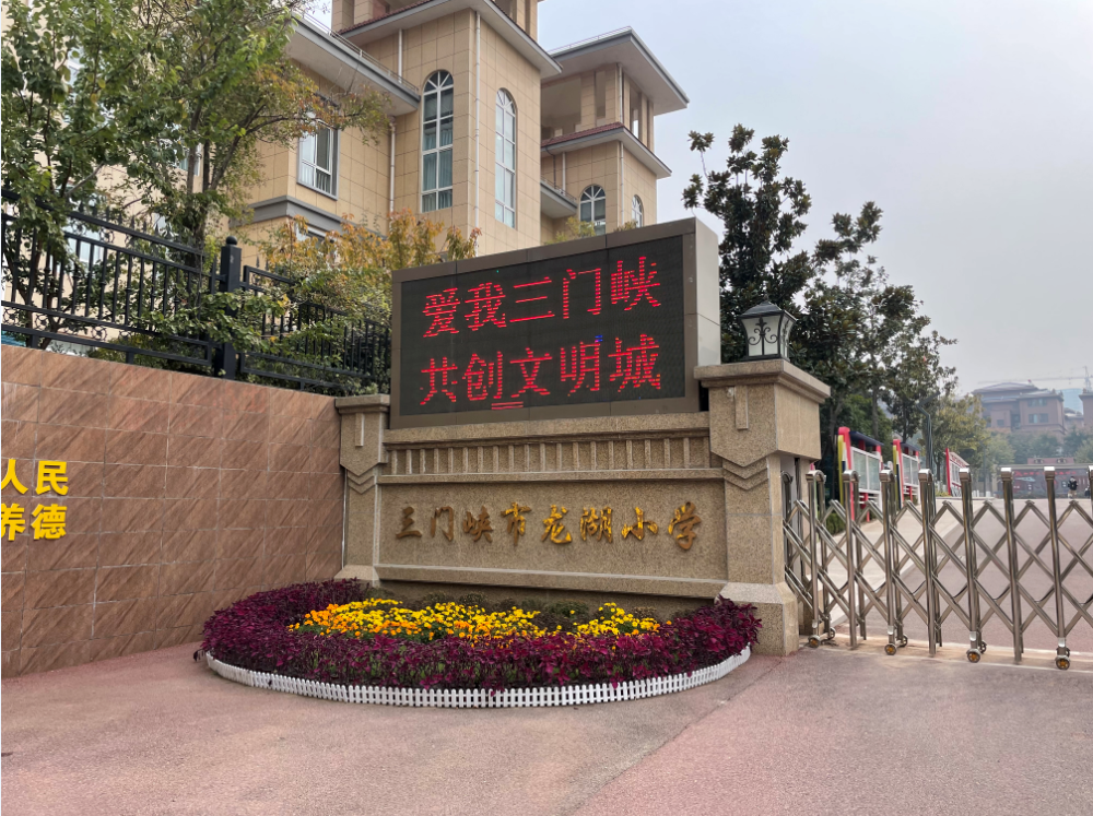 三门峡市龙湖小学位于商务中心区召公西路与甘山路交叉口,是一所拥有信息化教学特色的现代化学校。校区规划面积25000平方米,总建筑面积18700平方米,室外运动场7000平方米。学校硬件设施先进齐全,信息技术教室、科学实验室、音乐教室、学生阅览室、美术教室、卫生保健室、体育器材室、教学仪器室、舞蹈形体室、心理咨询室、书法教室、电钢琴教室等专用功能室一应俱全。学校于2016年9月投入使用,目前有24个教学班, 1360名在校生。现有教师70人,教师队伍学历高、年轻化程度明显,研究生学历3人,本科学历67人,35岁以下的青年教师占教师总数的90%。学校始终秉承为学生幸福人生奠基的办学理念,追求“和教育”的境界,引领学生发掘兴趣,快乐成长,创造幸福,形成了特色的办学之路,取得了良好的办学效益和社会的普遍认可。
