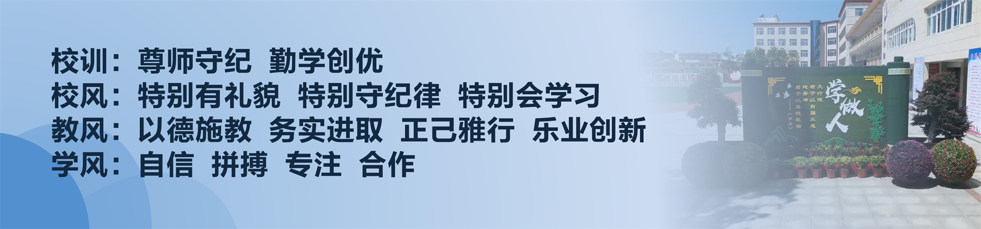 校训:尊师守纪 勤学创优