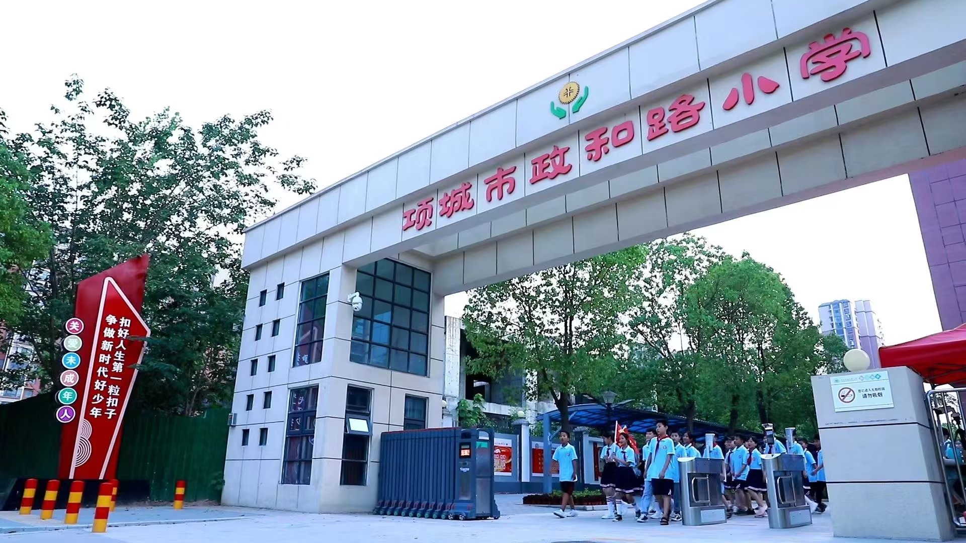项城市政和路小学,坐落于项城市城北政和路中段,学校始建于2018 年, 占地面积24679 平方米,学生人均活动面积高达19 平米。 学校内设有花园、果园、菜园,处处都有孩子的味道、教育的味道、 自然的味道。现有30 个教学班,学生1326 人,专任教师76 人,其中本科学历74 人,中小学中高级职称13 人,省市⻣干教师11 人, 师资力量雄厚。近三年来,学校先后被 评为“ 河南省数字校园标杆校” , “河南 省示范性图书馆”“ 周口市标准化管理示范校”“ 周口市语言文宇工作先进单位” 等,并连续五 年被评为“项城市教育体育工作先进单位” 。