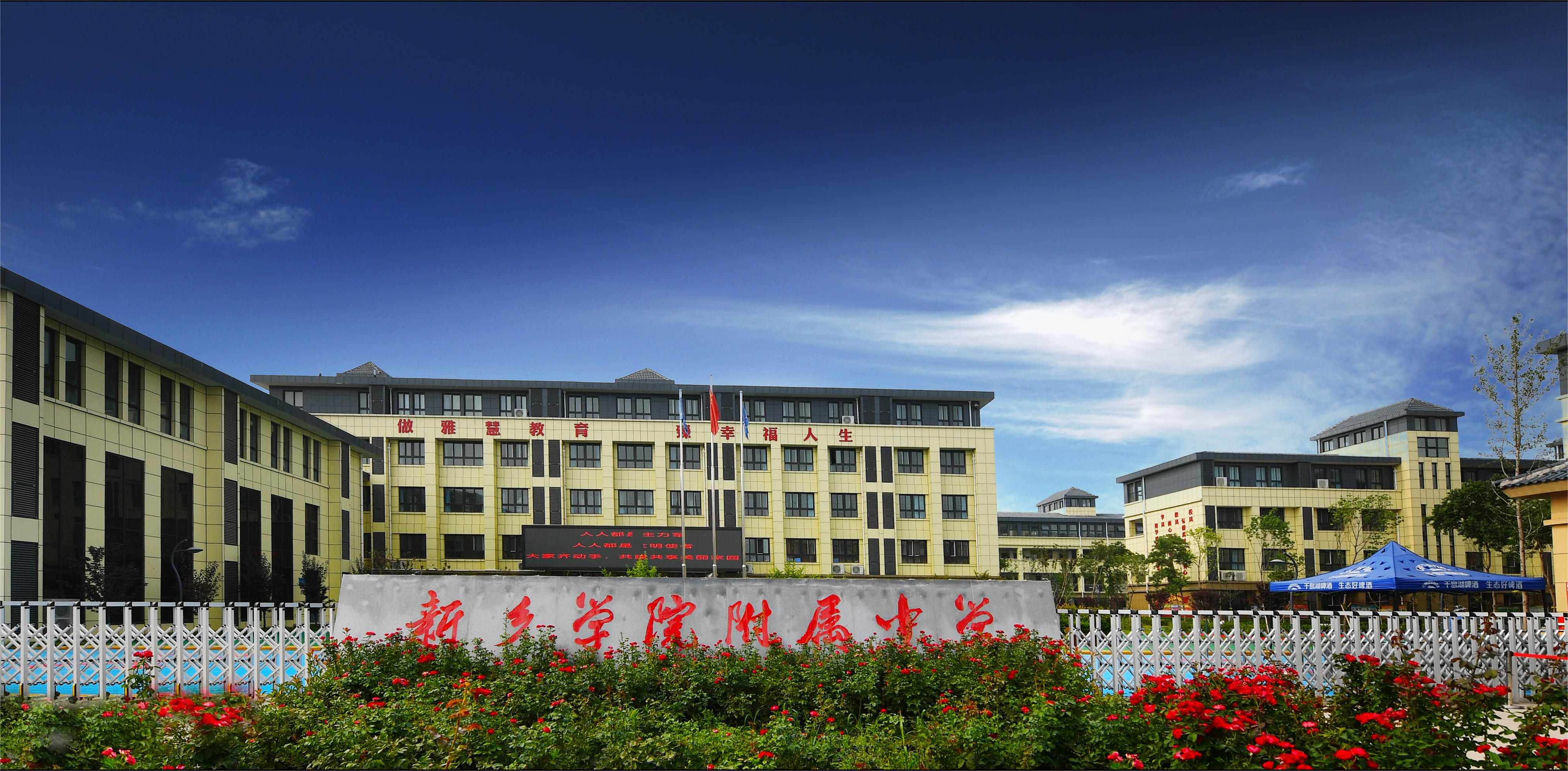 新乡学院附属中学是新乡市红旗区政府和新乡学院联合创办的一项重大民生工程,是一所九年一贯制现代化学校,学校位于向阳路与新五街路口西南角,占地总面积33639平方米(50.46亩),建筑总面积20393.9平方米。2017年12月12日,由红旗区政府和新乡学院共同签署联合办学协议,并正式命名为新乡学院附属中学,至2018年8月开始招生,开启了我市东区基础教育发展的新篇章。 新乡学院附属中学目前教师165人,教学班58个,学生近3000人。“三三德育体系”“雅学智测四环节教学模式”“一体两翼三融写作能力培养策略”已是我校教育教学核心系统。同时,打造管弦乐团、箜篌乐团、古筝乐队、足球队、篮球队、游泳队等十六支专业团队特色课程,促进特长趋向专业化发展。《灯火里的中国》歌舞视频荣获省厅一等奖;学生讲党史多次荣登学习强国。 历经近五年发展,学校秉承“做雅慧教育、臻幸福人生”的办学理念,初步实现了“一年稳起步、三年成规模、五年出品牌”的发展目标,办学质量和社会声誉显著提高,荣获“河南省文明校园”“河南省工人先锋号”“河南省五四红旗团支部”“河南省中小学劳动教育特色学校”“新乡市教育教学先进学校”“新乡市绿色校园”“新乡市学校领域基层团组织规范化建设示范校”等多项省市级荣誉称号。