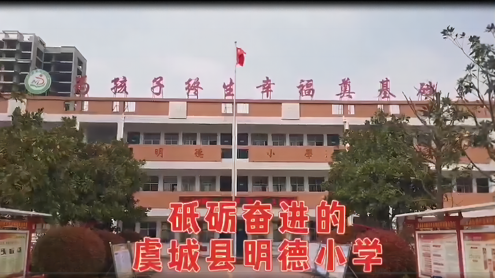 虞城县明德小学简介 虞城县明德小学现有56个教学班,在校学生3620人,现有教职工180人。学校占地面积13300多平方米,建筑面积6800平方米,绿化面积1800平方米。学校布局合理,环境优美,四季常青,校园文化氛围浓厚,“德”文化渗透到学校教育教学的各个方面。以学校“核心文化理念系统”为统领,坚持“为孩子终生幸福奠基,为民族美好未来负责”的办学理念、“立德 尚美 励志 搏彩”的校训、“团结、和谐、求真、向上”校风等核心文化理念,让师生内化于心,外见于行。 学校大兴学习之风、教研之风、课改之风,呈现出课题引领,整合发展、绿色发展,成果显著的良好局面。现在有省级课题3项,市级课题13项。长期坚持教育信息化的建设和应用,有力支撑学校的课程改革和教师的专业化发展。 我校一直坚持推进数字化校园的建设、教师信息技术应用能力的培训和信息化教学设施的应用。2014年我校在学习翻转课堂的基础上,形成了适合本校的“两单两段四环节”教学法,把课改推向一个新阶段。2019年我校被省教育厅命名为“河南省信息化示范校”。 我校加入到全国养成教育研究课题实验校行列,科学实施养成教育。对不同年级段,从如下八个方面制定出具体的达成目标:胸怀祖国、文明礼仪、遵纪守法、学习求知、生活卫生、健康安全、勤俭环保、志愿服务。每月推进一至两个大项。 我校把阅读、写字和口算作为重要抓手,来培养学生的基本文化素质。学校实施 “爱上阅读”工程,努力打造书香校园,提高师生人文素养。倡导老师走专业化阅读之路,共读共写。以“书写中国”项目为抓手,午辅导专设一节课的时间指导学生练习写字;要求数学课每节课开始都要对学生进行口算训练。 近年来,我校获得多项荣誉:河南省文明校园、河南省中小学数字校园标杆学校、河南省校园文化艺术工作先进单位、省师德师风先进校、省义务教育课程改革先进单位、省先进家长学校、省教育信息化学校、省教育信息化应用示范校、全国青少年五好小公民主题教育“美丽中国,我的中国梦”主题教育活动先进集体、全国养成教育实验学校等荣誉称号。