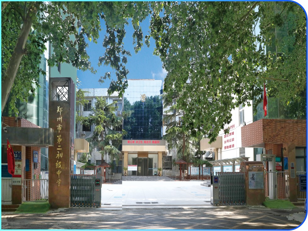 郑州市第二初级中学始建于1941年9月,前身为郑州市第二中学初中部。至今已有81年的光荣办学传统,是一所历久弥新的中原名校。81年来,学校始终不忘立德树人初心,牢记为党育人、为国育才使命,秉承“自主发展、快乐成长”的办学理念和“健康、博爱、有为”的育人目标,践行“勤”文化,构建了面向未来的发展新样态。 学校为郑州市第二初级中学教育集团核心校,位于二七区桃源路43号,占地38亩。目前,有36个教学班,教职工124人,学生1820人。其中,高级教师34人,全国优秀教师1人,省级名师2人,市级名师1人,省级骨干教师6人,市级骨干教师35人。学校党总支下设4个党支部,在职党员教师60人。 学校办学历史悠久,文化积淀深厚,办学业绩突出。先后荣获全国和谐校园先进学校、优秀校园足球特色学校;河南省文明校园、首批师德师风先进学校、河南省中小学德育工作先进集体、河南省中小学书香校园、教育系统先进家长学校、首批河南省义务教育阶段优质教育集团、河南省中小学信息化教学改革实验校、河南省中小学数字校园标杆校、河南省中小学多文本阅读教学实践研究实验学校;郑州市首批“新优质初中学校”、平安建设基层创建示范单位、普通初中教学创新先进单位、教育科研实验基地等。地理、化学教研组为郑州市优秀教研组,拥有郑州市名班主任工作室、地理学科基地等。 学校坚持“五育”并举,致力于培养“健康、博爱、有为”的新时代好少年。校园足球、篮球、网球、桥牌、跆拳道等品牌项目捷报频传,鸿雁论坛、鸿雁戏剧节、书香校园、阳光大课间等活动如火如荼,黄河情、共读《论语》等校本课程广受好评,慕习社、模联社等学生社团卓有影响。