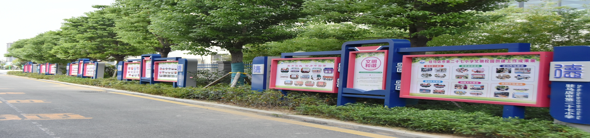 驻马店市第二十七小学成立于2011年8月,学校位于驻马店经济开发区核心地段,毗邻开发区管委会、市委党校、金山办事处等重要机关单位。目前,学校占地47000平方米(合70亩),建筑面积近30000平方米,有72个教学班,4983名学生,248名教师。学校环境优美,教学设施一流,有标准的400米跑道塑胶田径场和室内运动场,班班都有多媒体教学设备,可与全国很多著名小学实行网上教学资源共享。
