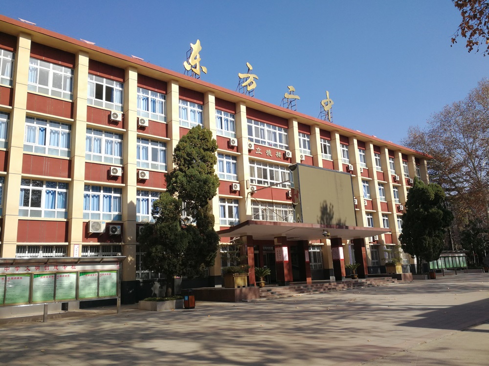洛阳市东方第二中学(简称“东方二中”,原名拖二中)是全国校园足球特色学校、河南省文明校园、河南省德育工作先进单位、河南省校园文化艺术工作先进单位、西交大少年班优秀生源基地、洛阳市首批示范性特色学校、洛阳市体卫艺特色学校、 洛阳市教育局优秀生源培养基地。学校创办于1971年,2002年初中部与拖一中初中部整合,2005年5月学校与企业分离,移交洛阳市政府,2006年更名为洛阳市东方第二中学,2013年7月与洛阳市第三十七中学两校融合,2019年底转隶涧西区。学校现为一校两院,86个教学班,在校生4 620人。现有教职工303人,专任教师300人。其中,省级学科带头人3人,省级骨干教师7人,市级骨干教师2人,洛阳市名师2人;中学高级教师67人,中学一级教师137人。 学校坚持精神立校,始终传承国企优秀文化,继承弘扬焦裕禄精神,形成了“朴实无华 深沉内敛 负重前行 勇攀高峰”的学校品格。学校落实立德树人根本任务,打造三品(有品质、有品格、有品位)校园,致力于教师和学生的全面发展,培养“四有”(有理想信念、有道德情操、有扎实学识、有仁爱之心)好老师,让每一个学生每天都阳光灿烂,让每一个学生成为更好的自己,让生命因教育而迸发活力与光芒。