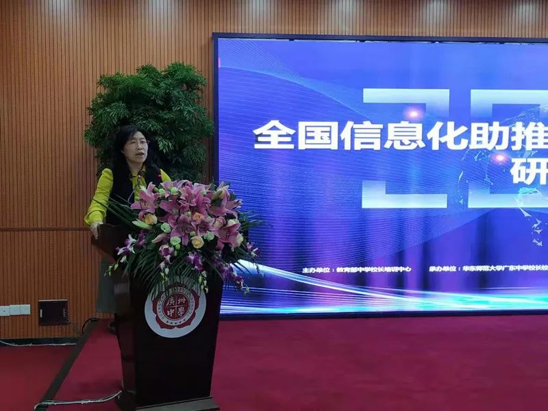 本次研讨会由教育部中学校长培训中心副主任刘莉莉主持,常州市教育研究院院长戴晓娥、广州中学校长彭建平、广东省实验中学校长全汉炎、华南师范大学教师教育学部教师发展评估院吴少平、杭州市建兰中学校长饶美红、东莞市松山湖实验中学校长万飞、清华大学附属中学校长王殿军、广州市执信中学校长何勇分别以专题讲座、案例教学、项目展示、参与式研讨等形式向近三百名与会者做了信息化助推学校教育评价改革的经验、成果及思考的分享。