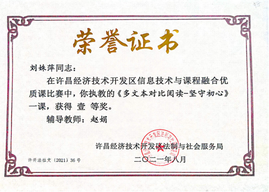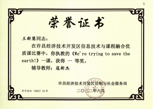 信息技术与课程融合优质课证书