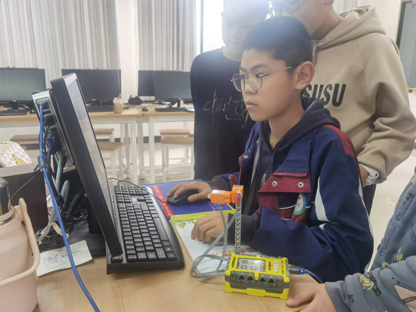 同时,作为科学和信息科技课堂教学的延伸,学校还开设了机器人社团、创客空间社团、动力机械社团、爱科学社团等,深受学生喜爱。学校每学期举办一次“科技周”活动,学生通过参加科技小制作展示、乐高拼装展示、科技类社团成果展示、图形化编程比赛、3D 模型设计比赛、EV3机器人对抗赛等丰富多彩的活动,充分感受到了科技的魅力,增强了创新意识和能力。