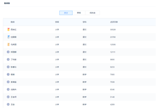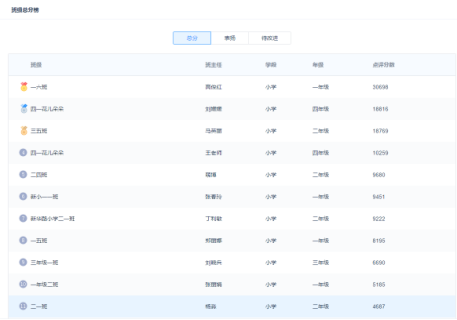 以下是班级优化大师班级使用管理统计排名,分别是班级排行榜、教师排行榜。