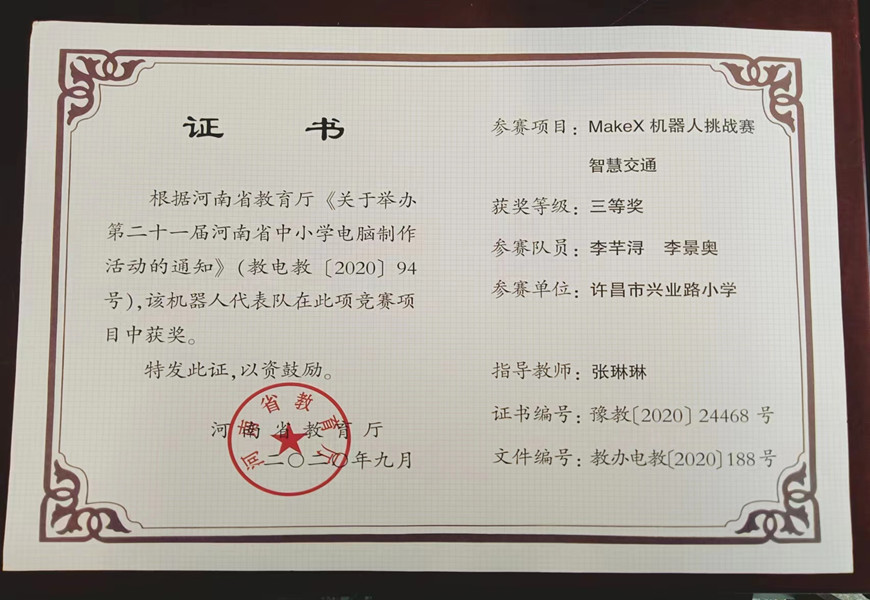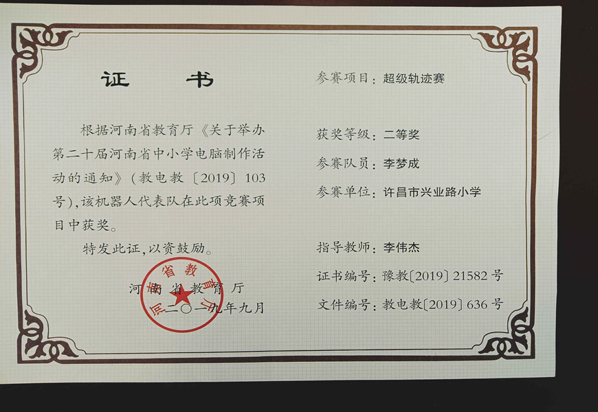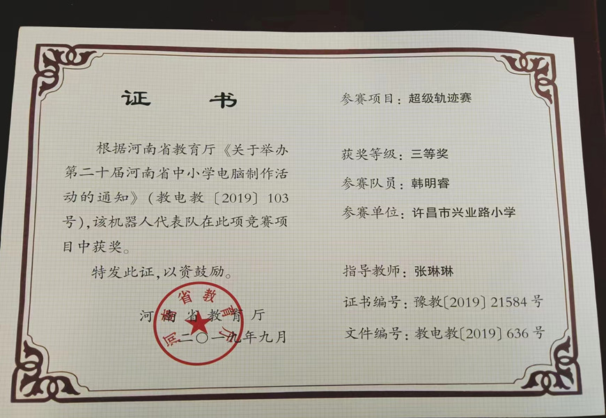 学生信息技术获奖证书