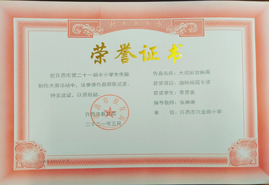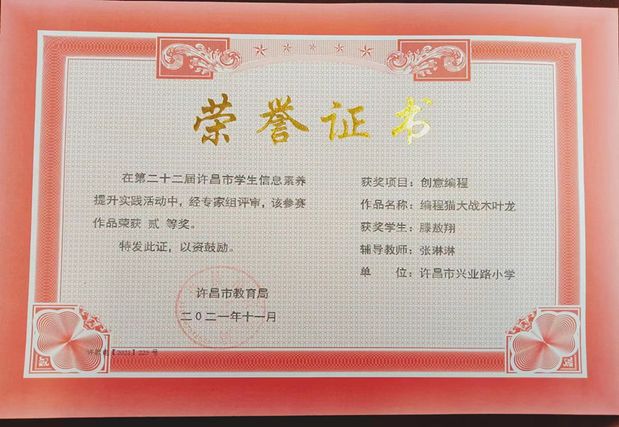 学生获奖证书