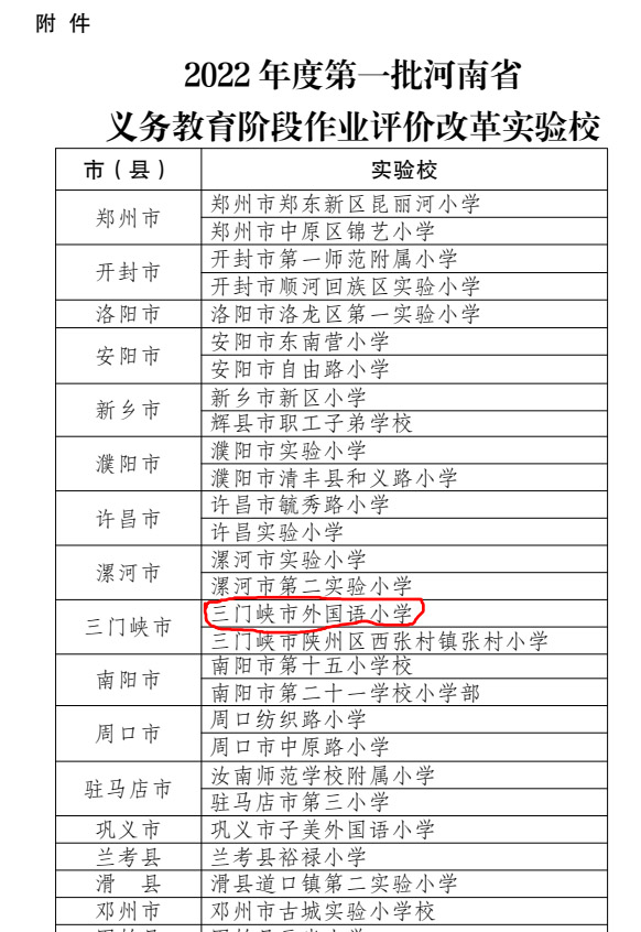 关于确定河南省义务教育阶段作业 评价改革示范区和实验区(校)的通知