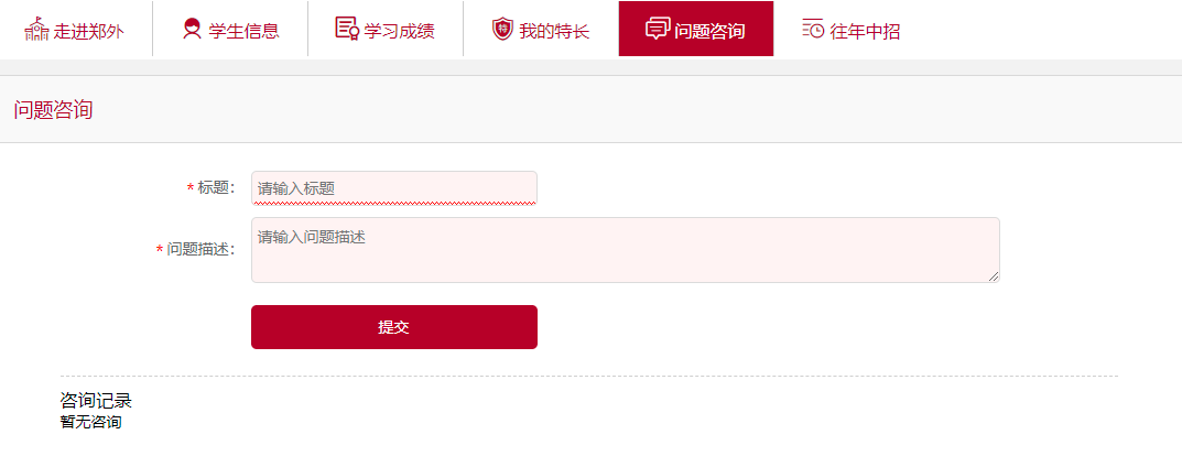为方便广大有意报考郑州外国语学校的优秀初中毕业生,学校开通了云游校园和中招咨询系统,该系统可以通过电脑端以及移动端进行登录。登录后,如有问题可以在问题咨询模块中进行咨询,有专人进行解答。