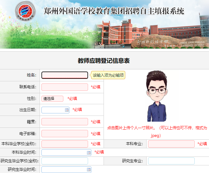 郑州外国语学校教育集团自主招聘系统为求职者提供了一个可提交个人简历的招聘系统