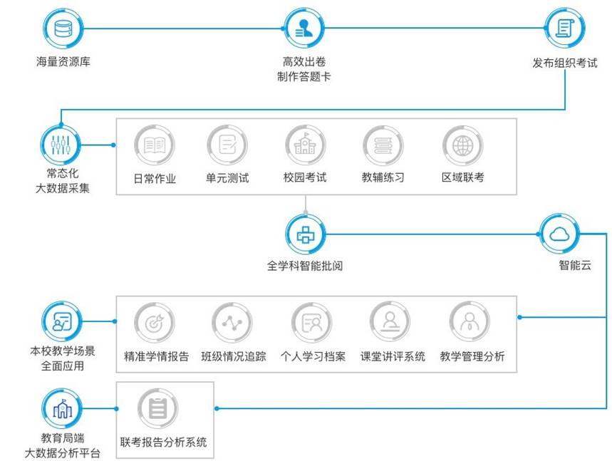 在教育特别是在学校教育中,数据成为教学改进最为显著的指标。教育领域中的大数据分析最终目的是为了改善学生的学习成绩。教学过程中,作业批改、单元练习、考试等过程性评价或终结性评价中会产生大量的教学数据。作业和考试的数据往往在教师讲评后就丢失了,这使得教师对学生个体的认识停留在短时记忆层面,由于缺乏对学生个体的跟踪分析,不利于有效地开展个性化教学,差异性教学,从而无法达到因材施教的效果。