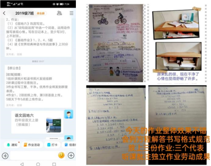授课后,老师再把本节课的所有资源推送到家校群,在学习空间里互动交流、个性化辅导、拓展延伸,特别注重线下作业的多样化,反馈与督促,重难点知识的强调与说明,大大提高了线上教学的质量。