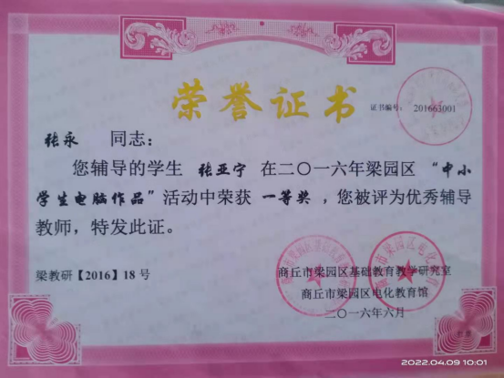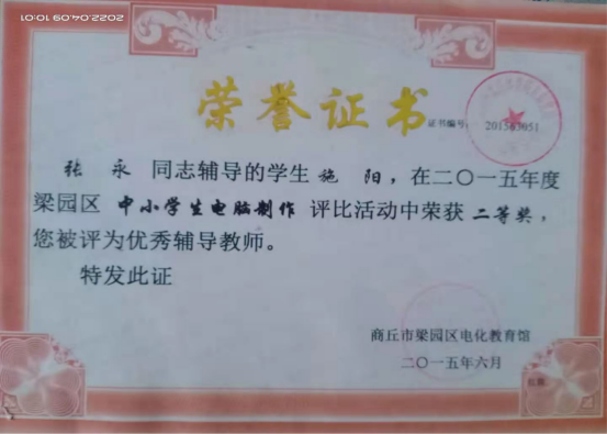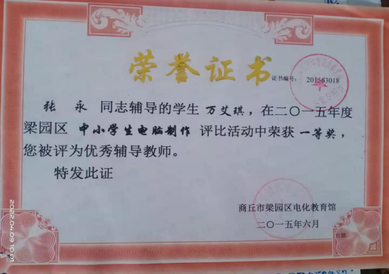 张永老师辅导的学生参加区中小学生电脑制作获奖