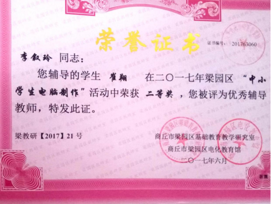 李叙玲老师辅导的学生参加区中小学生电脑制作获奖
