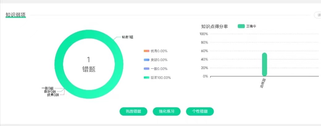 3.个性化报告能精准的显示学生的弱项,可以让课堂学习更高效。老师可以根据数据统计,了解学生的薄弱点和易错题,集中对易错题进行讲解,合理安排时间。