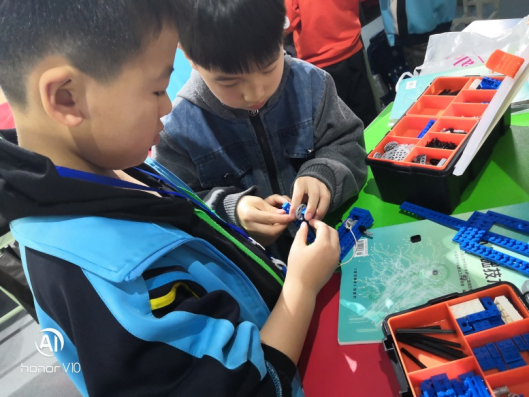 而创意编程、机器人组件组装等让孩子们能以一个较低的门槛迈入程序设计与硬件创新的大门。只见孩子们围在桌边认真地进行拼装,他们熟练地摆弄着各种小零件、电机、传感器等,俨然像个小工程师。通过编程和反复调试,机器人准确无误地完成了各项指令。他们用创客的方式方法解决问题,并从中获得成就感与乐趣。