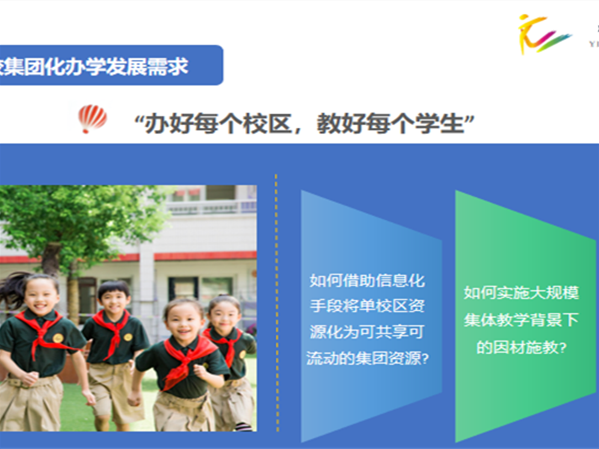 基于国家教育信息化发展战略,基于学校集团化办学发展需求,我们坚持“办好每个校区,教好每个学生”的宗旨,努力借助信息化手段将单校区资源化为可共享、可流动的集团资源,探索实施大规模集体教学背景下的因材施教,回应人工智能时代对教师信息素养提出的变革性要求。