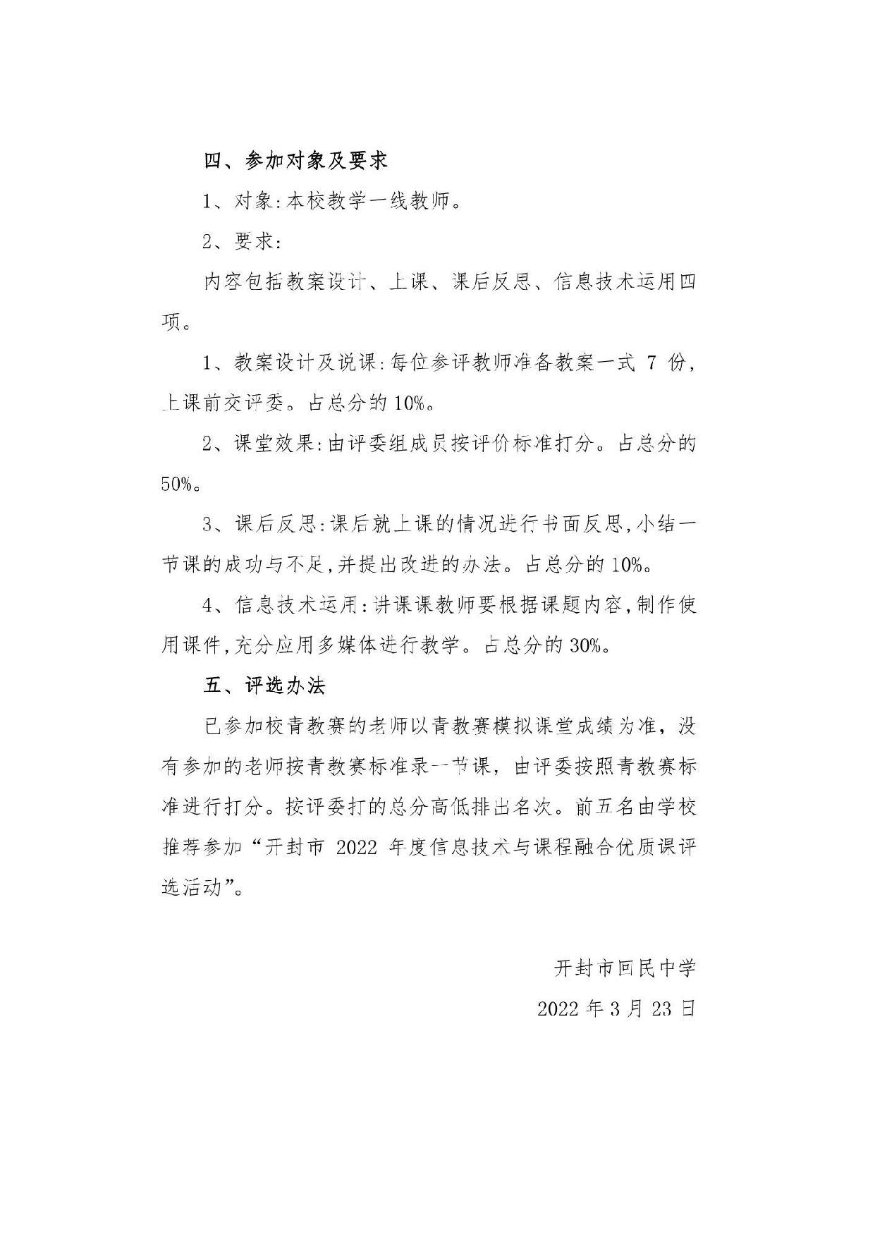 开封市回民中学组织教师积极参加2022年信息技术与课程融合优质课评选