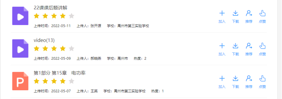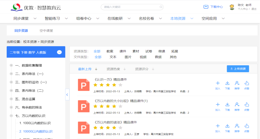 3、教师资源共享,上传共校本资源,区本资源,市本资源。
