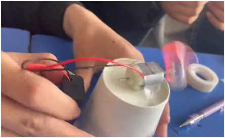 四年级学生接受创客教育,通过生活中的材料组合成机械机器,将物理知识、信息知识等基础课程汇总在一起进行操作,让孩子在操作中探索科技的奥秘。