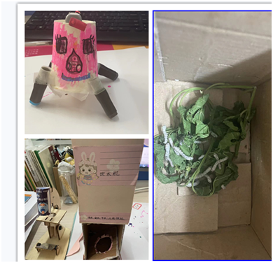 科技不能止与价格,所以在创客活动中,我们的孩子们尝试利用生活中常用的材料来满足教育教学,废纸板、泡沫壳等都成了孩子们“收废品”回收利用的来源。