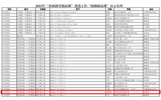 2023年4月,国家教育部官方网站公布了2022年基础教育“部级精品课”遴选名单。我校张君梅老师所执教的外研版四年级上册“Module 3 Unit 1 What are they doing?”入选教育部小学英语组精品课名单,该课的课堂实录后续将在国家智慧教育云平台“部级精品课”栏目进行展示。