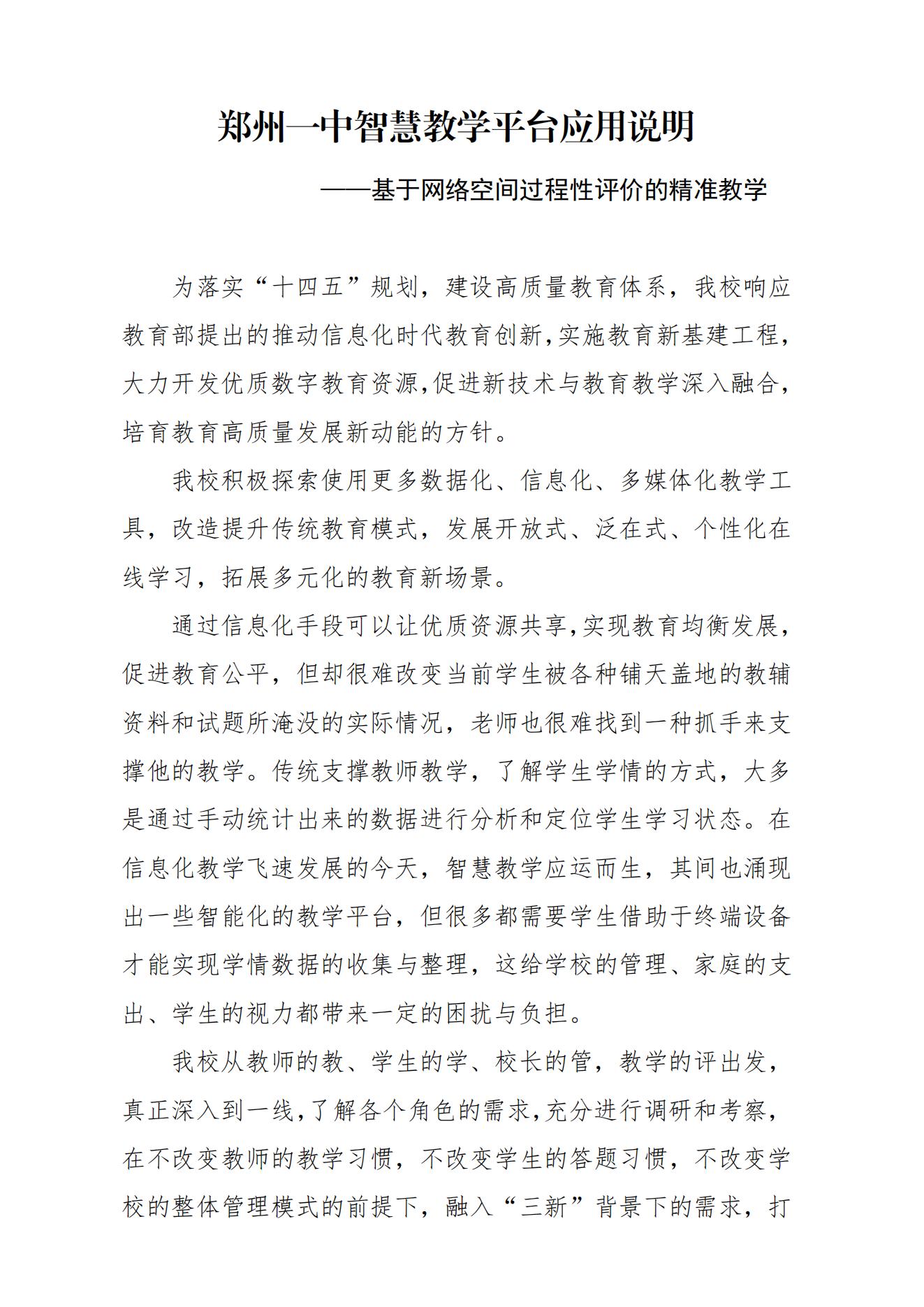 郑州一中基于网络空间过程性评价的精准教学建设方案