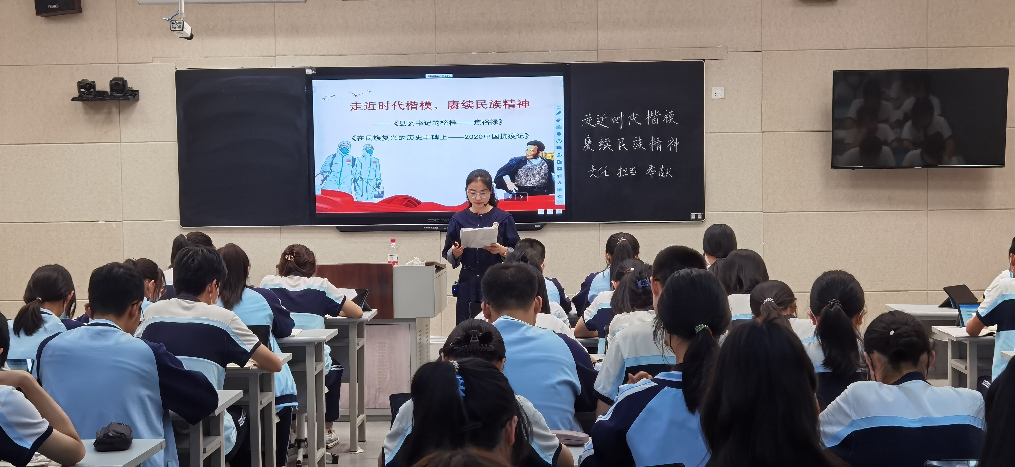 语文教研组示范打样获听课教师一致好评。在语文组教研活动中,谭赟老师以“瞻前顾后锁定关键,字斟句酌缀成佳居”为题,通过三个环节来展开课堂教学。王莹老师以《走近时代楷模 赓续民族精神》为题,将“伟大的复兴”单元中《县委书记的榜样——焦裕禄》和《在民族复兴的历史丰碑上——2020中国抗疫记》两篇文章进行单元教学。两位老师以创设学习情境入手,连接情境活动,环环相扣,层层递进,达到知识性与人文性的融合,培养学生的核心素养。刘雨、徐俊颖两位老师分别作为王莹、谭赟老师主评人,基于学习目标从情境活动任务、用时、课堂达成手段、学生达成效果、反思建议对授课教师进行全面细致的评课。语文教研组组长袁四零老师以《守正出新 精业笃行》为重点,汇报了语文组在学校“行”文化引领下,脚踏实地教研,“走出去、请进来”学习,实践笃行中收获丰硕。