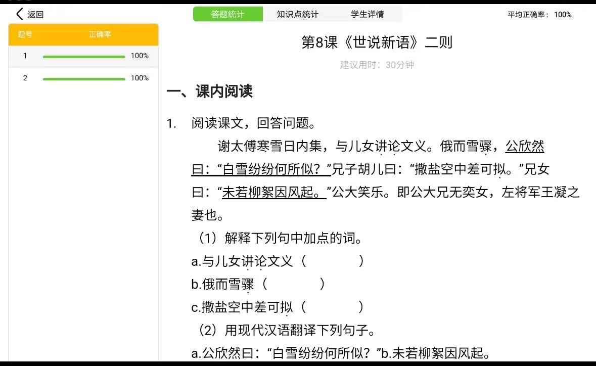智慧课,必需的硬件支撑是师生人手一台平板。课堂上,老师手持平板授课,学生跟着老师的引导,在黑板、大屏幕和平板间任意切换。以课堂练习为例,2分钟内,学生在平板上答题提交,“后台”即时批阅,多少人答对,多少人答错,错了哪几题,所有信息即时反馈,针对个别学生,老师追加“响应”,以“微课”形式一对一辅导。“放在以前,这样的反馈往往还需要一节课时间。”